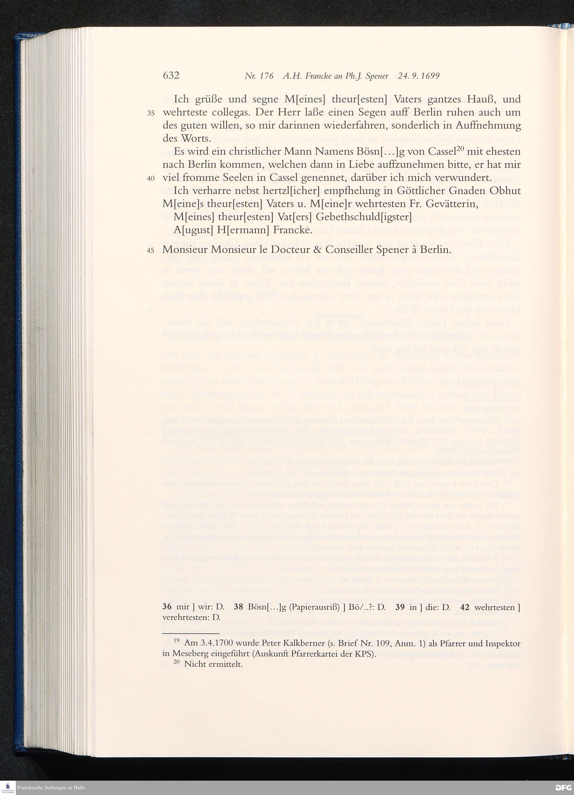 Nr. 176 A. H. Francke an Ph. J. Spener 24.09.1699