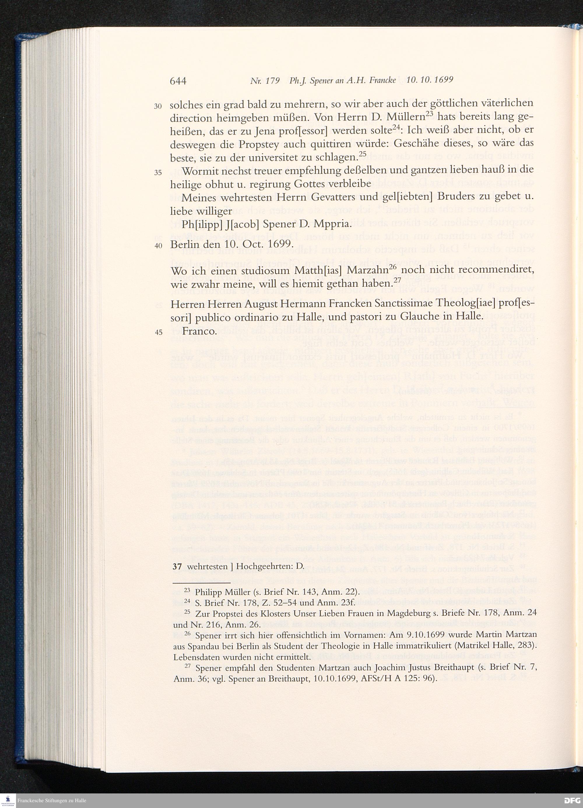 Briefwechsel mit August Hermann Francke : 1689 - 1704 / Philipp Jakob Spener. Hrsg. von Johannes Wallmann ... in Zsarb. mit Veronika Albrecht-Birkner