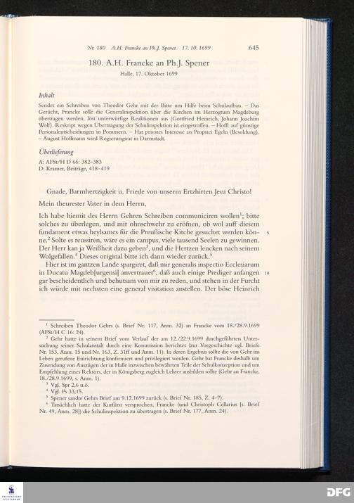 Nr. 180 A. H. Francke an Ph. J. Spener 17.10.1699