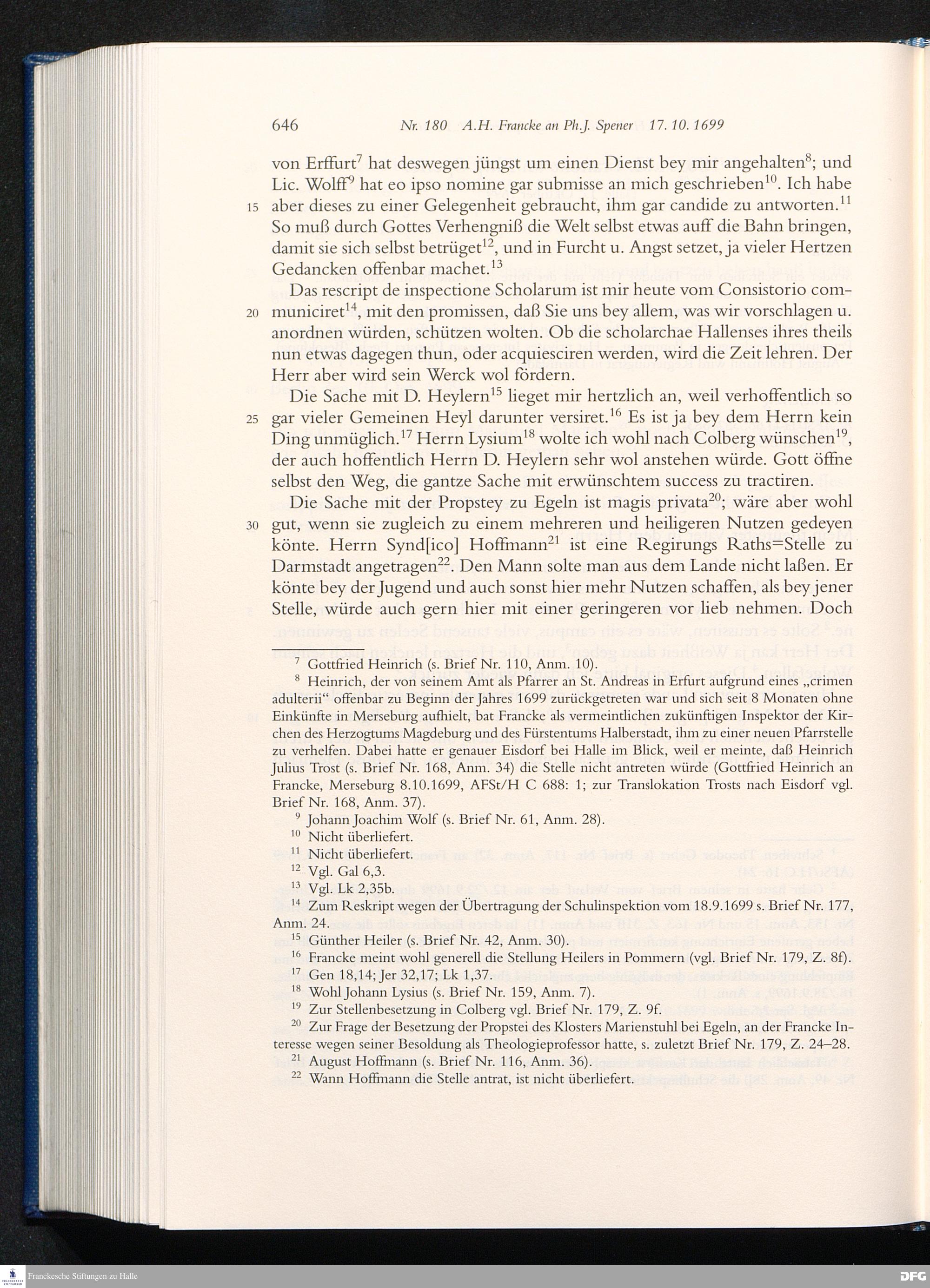 Nr. 180 A. H. Francke an Ph. J. Spener 17.10.1699