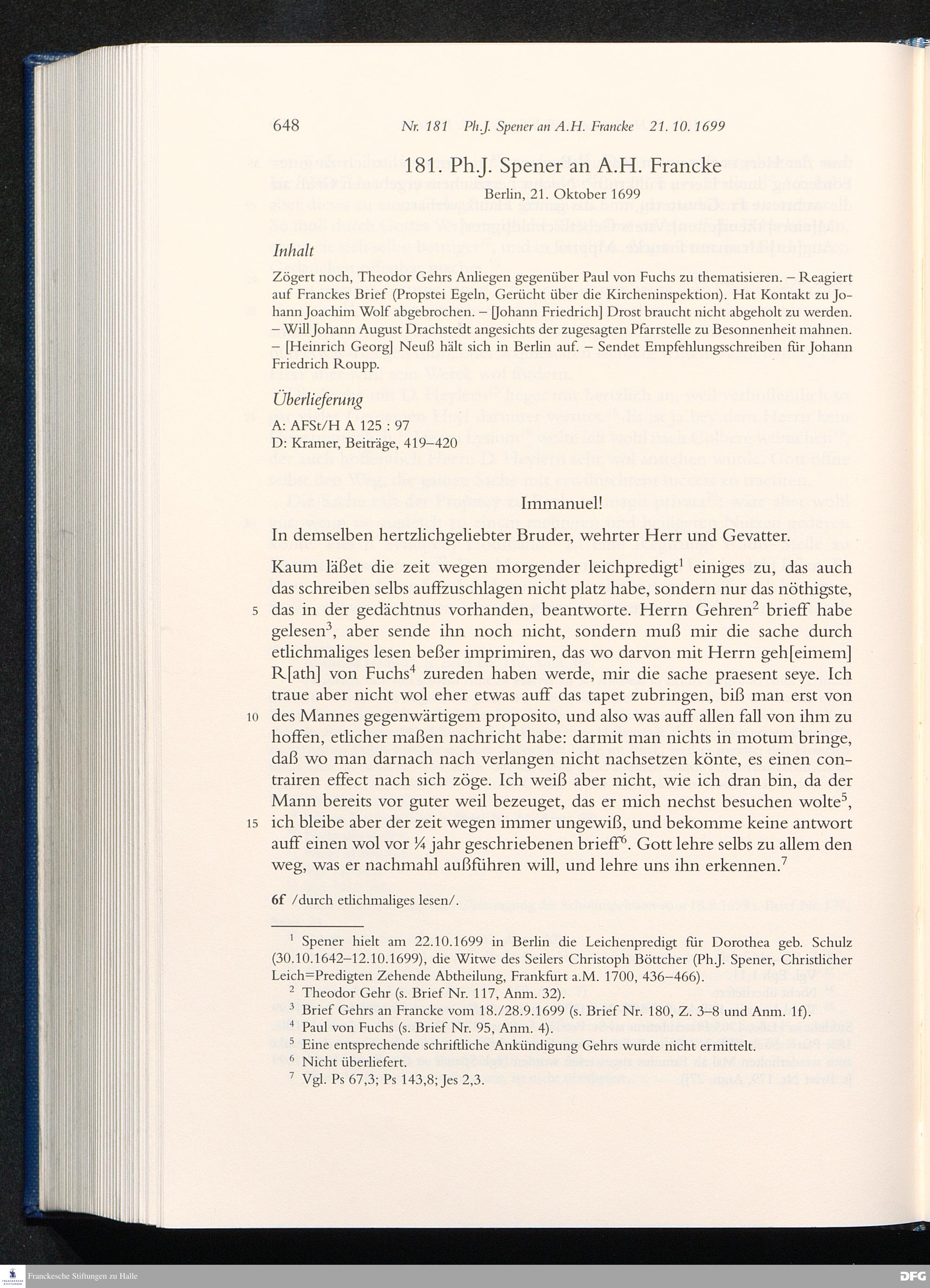 Briefwechsel mit August Hermann Francke : 1689 - 1704 / Philipp Jakob Spener. Hrsg. von Johannes Wallmann ... in Zsarb. mit Veronika Albrecht-Birkner