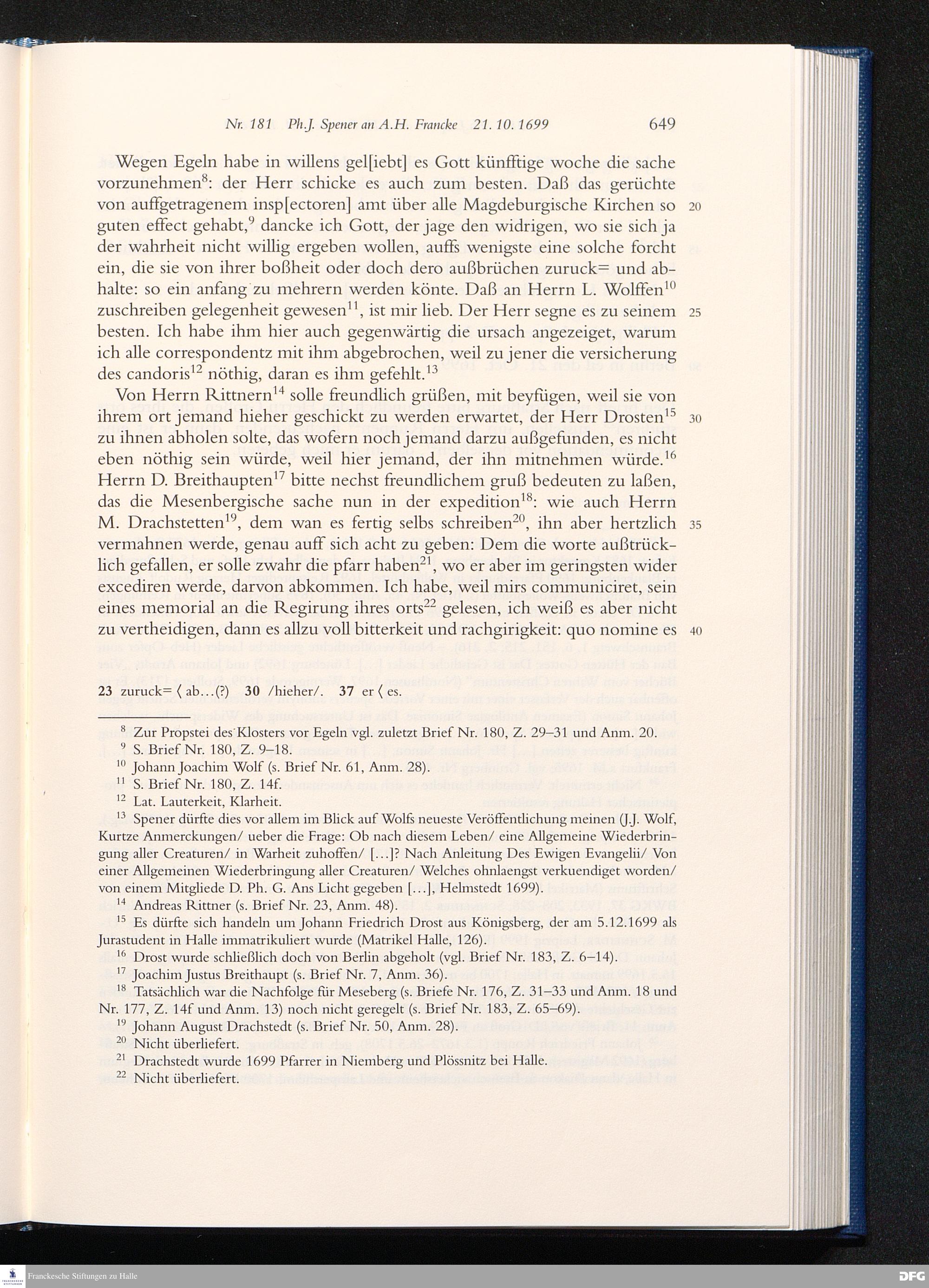 Briefwechsel mit August Hermann Francke : 1689 - 1704 / Philipp Jakob Spener. Hrsg. von Johannes Wallmann ... in Zsarb. mit Veronika Albrecht-Birkner