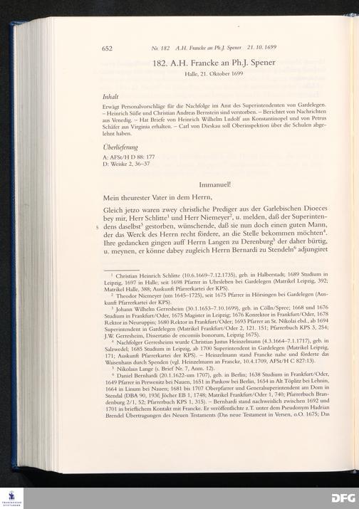 Nr. 182 A. H. Francke an Ph. J. Spener 21.10.1699