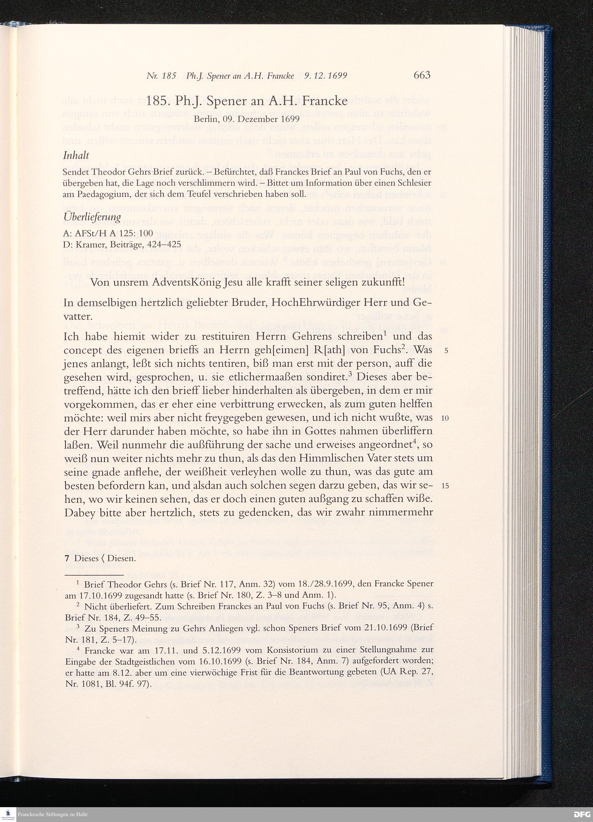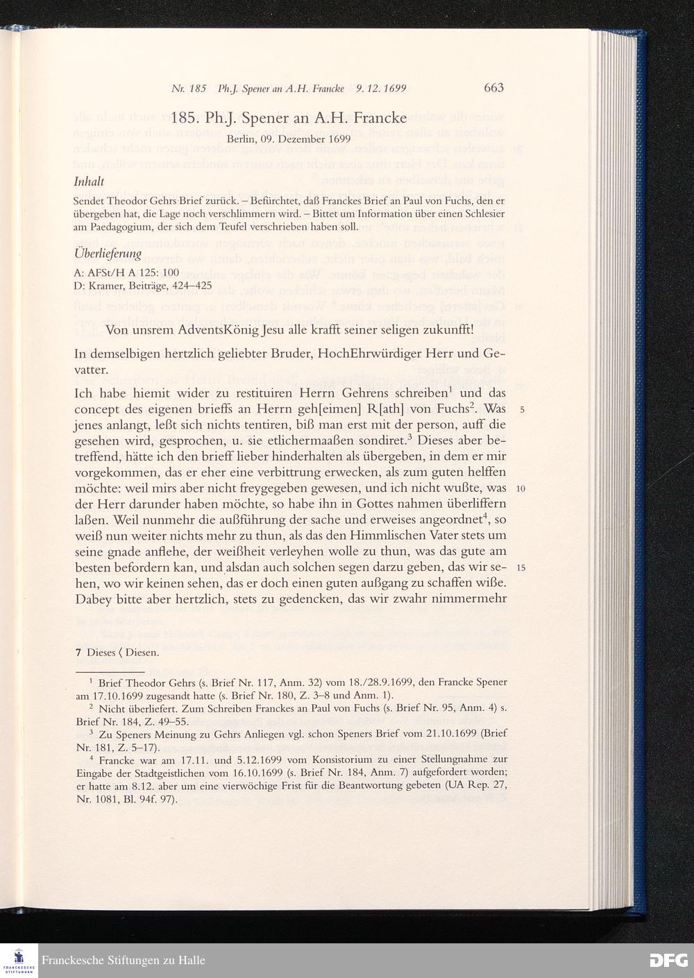 Briefwechsel mit August Hermann Francke : 1689 - 1704 / Philipp Jakob Spener. Hrsg. von Johannes Wallmann ... in Zsarb. mit Veronika Albrecht-Birkner