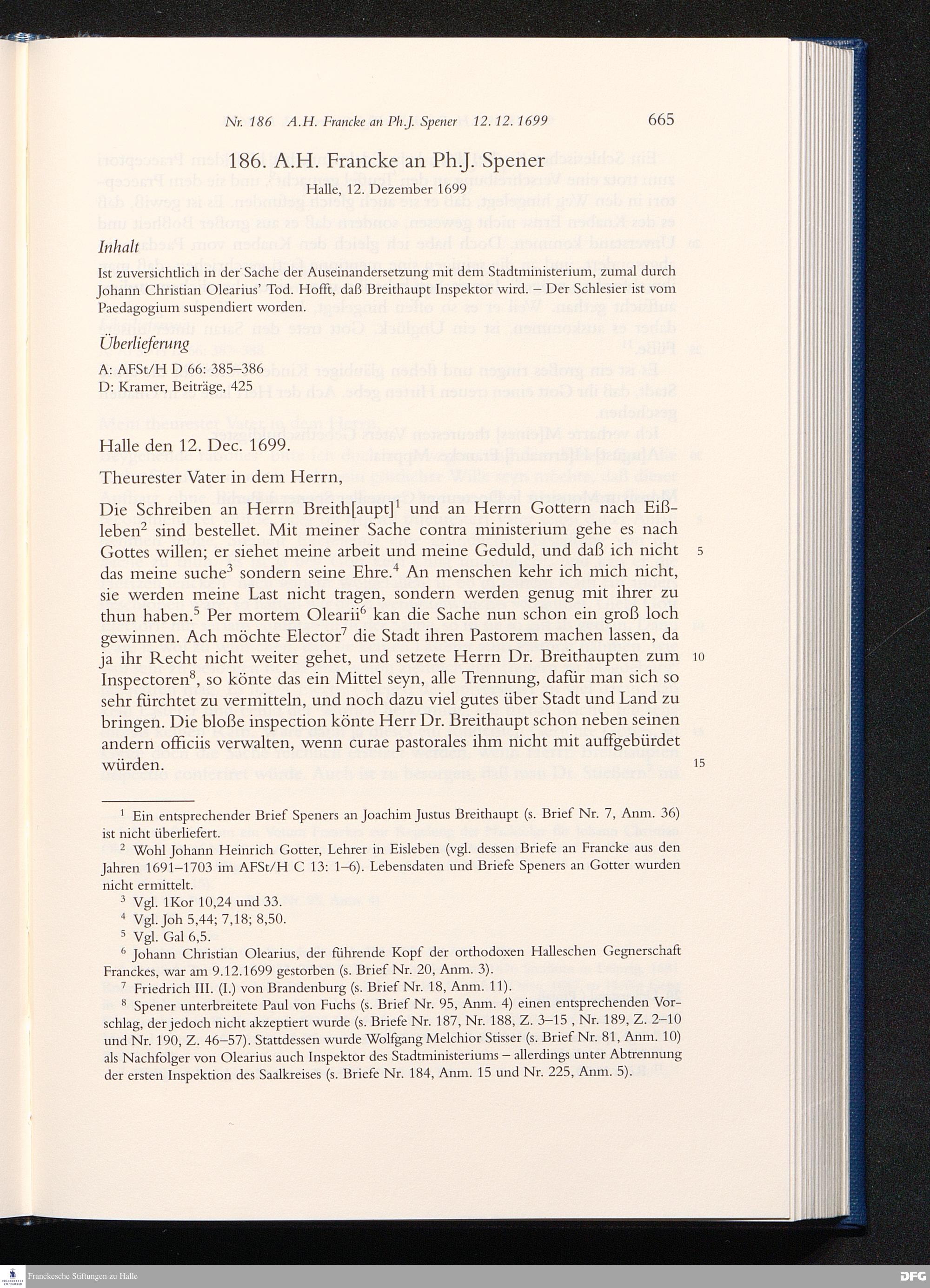 Nr. 186 A. H. Francke an Ph. J. Spener 12.12.1699
