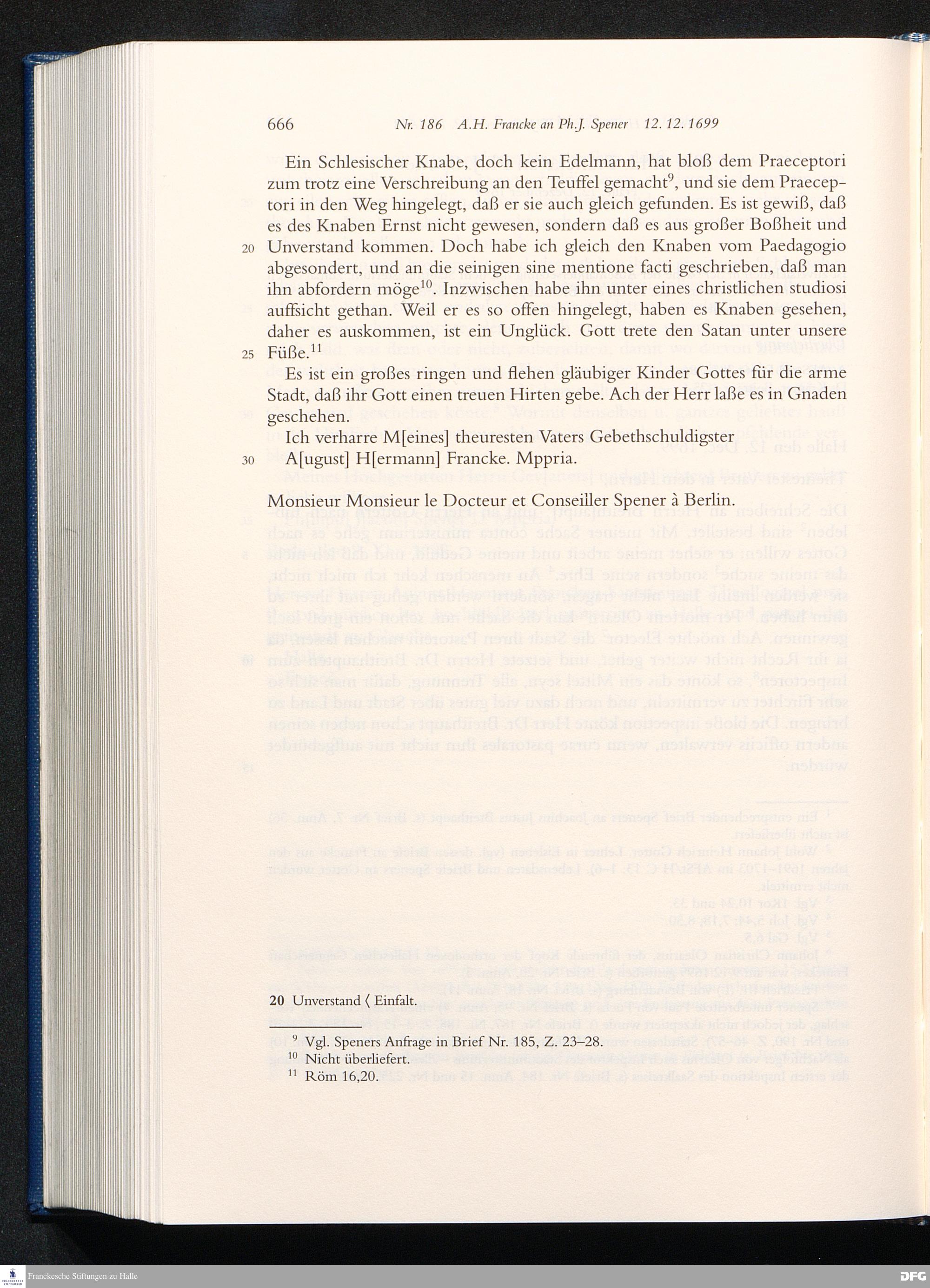 Nr. 186 A. H. Francke an Ph. J. Spener 12.12.1699