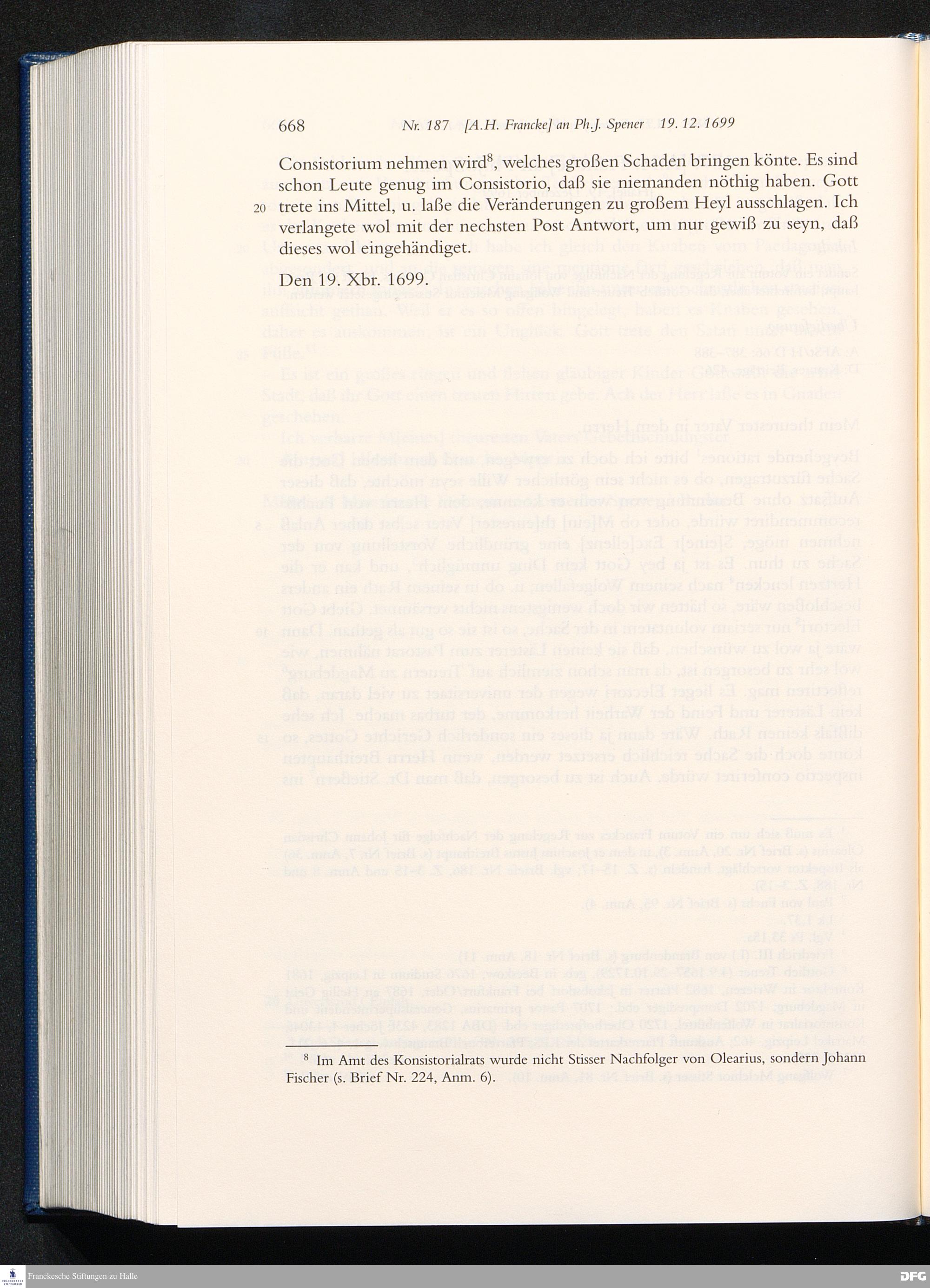 Nr. 187 [A. H. Francke] an Ph. J. Spener 19.12.1699