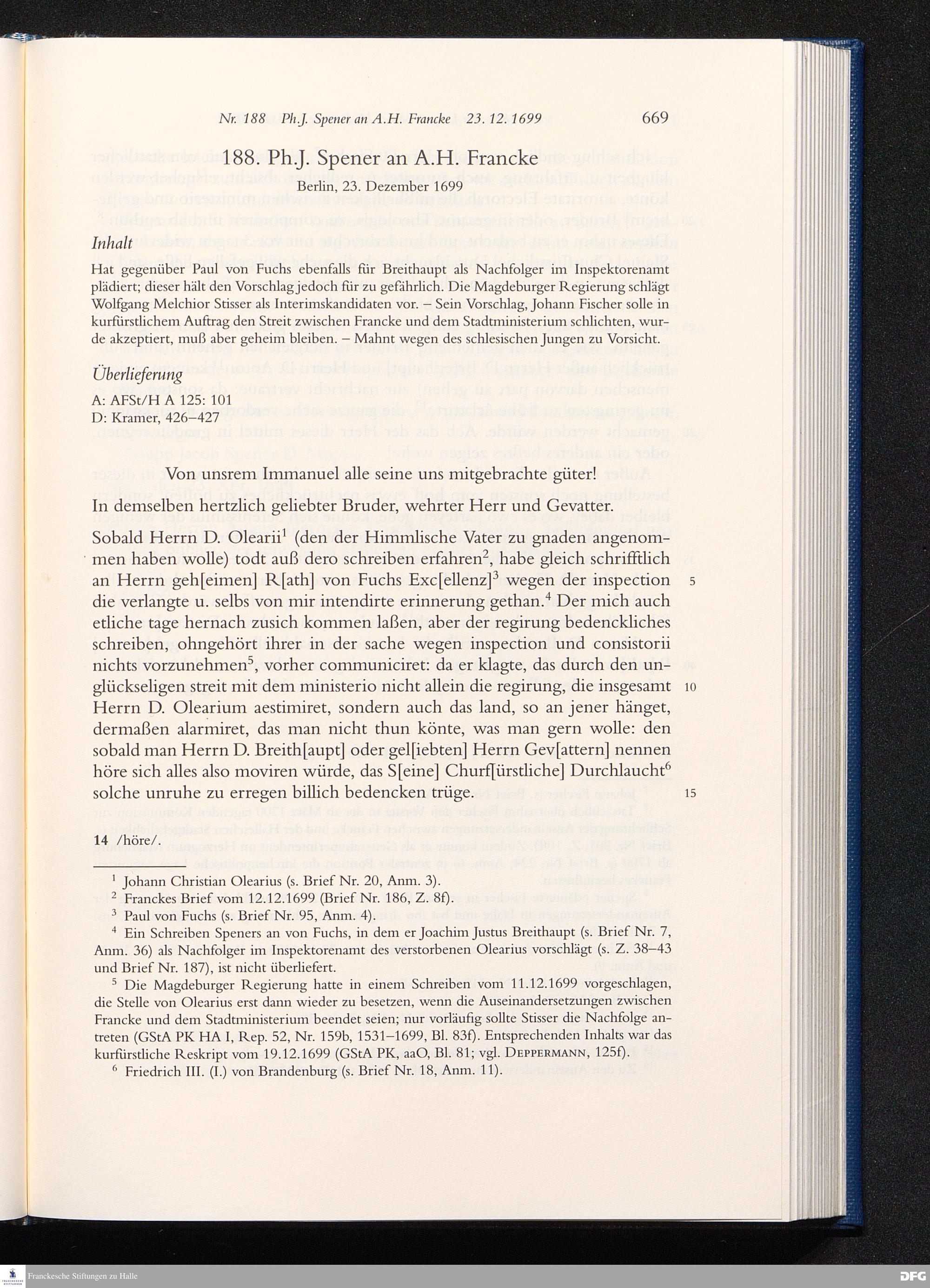 Briefwechsel mit August Hermann Francke : 1689 - 1704 / Philipp Jakob Spener. Hrsg. von Johannes Wallmann ... in Zsarb. mit Veronika Albrecht-Birkner