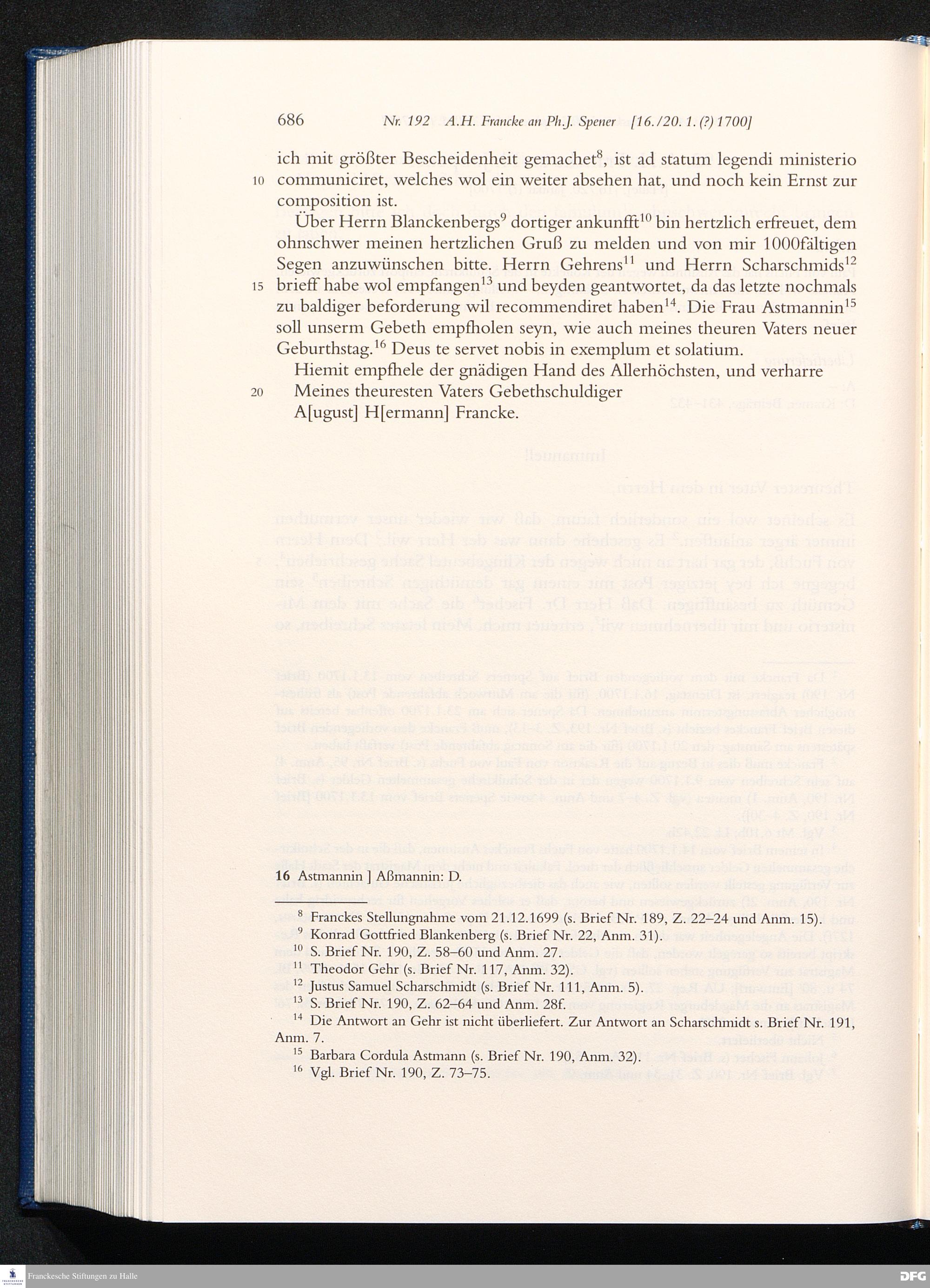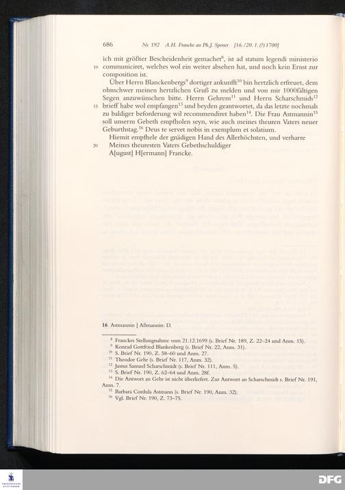 Briefwechsel mit August Hermann Francke : 1689 - 1704 / Philipp Jakob Spener. Hrsg. von Johannes Wallmann ... in Zsarb. mit Veronika Albrecht-Birkner