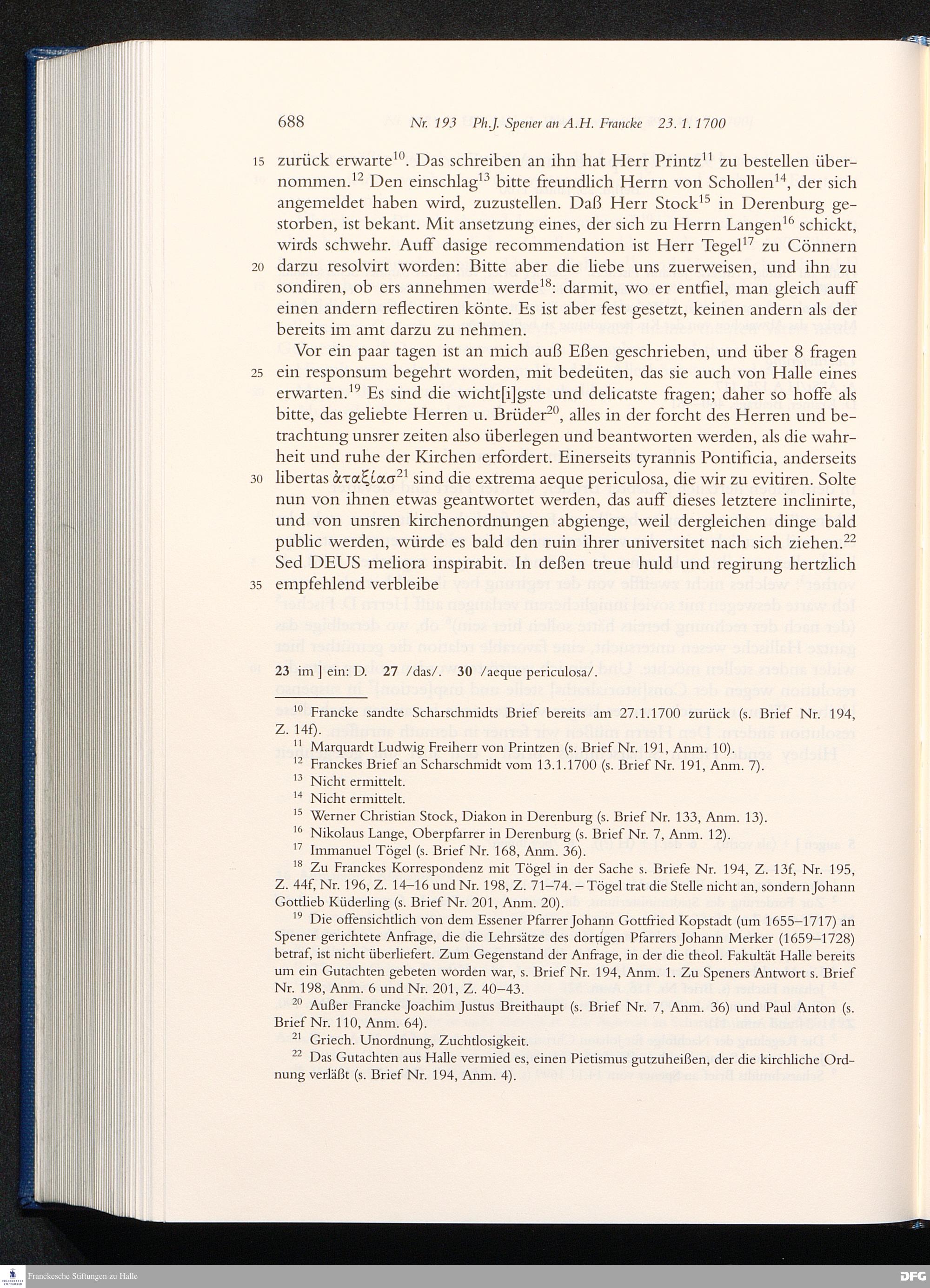 Briefwechsel mit August Hermann Francke : 1689 - 1704 / Philipp Jakob Spener. Hrsg. von Johannes Wallmann ... in Zsarb. mit Veronika Albrecht-Birkner