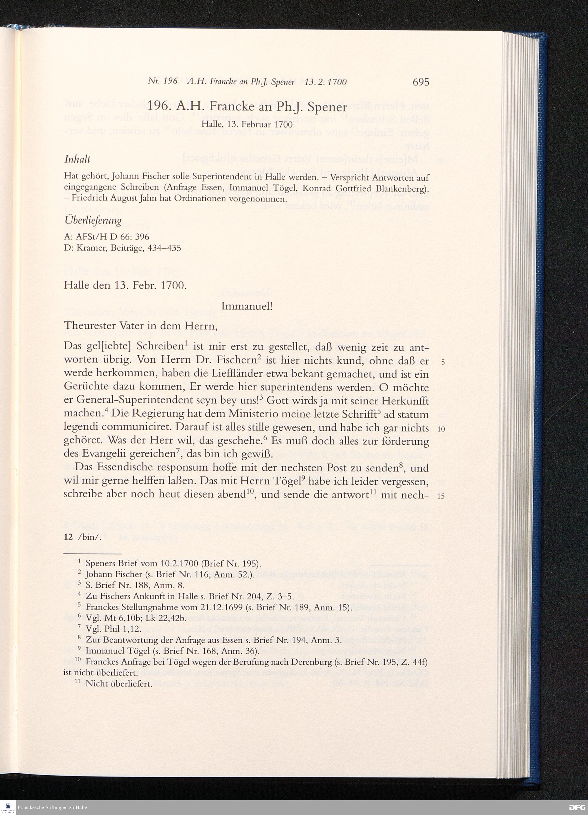 Nr. 196 A. H. Francke an Ph. J. Spener 13.02.1700