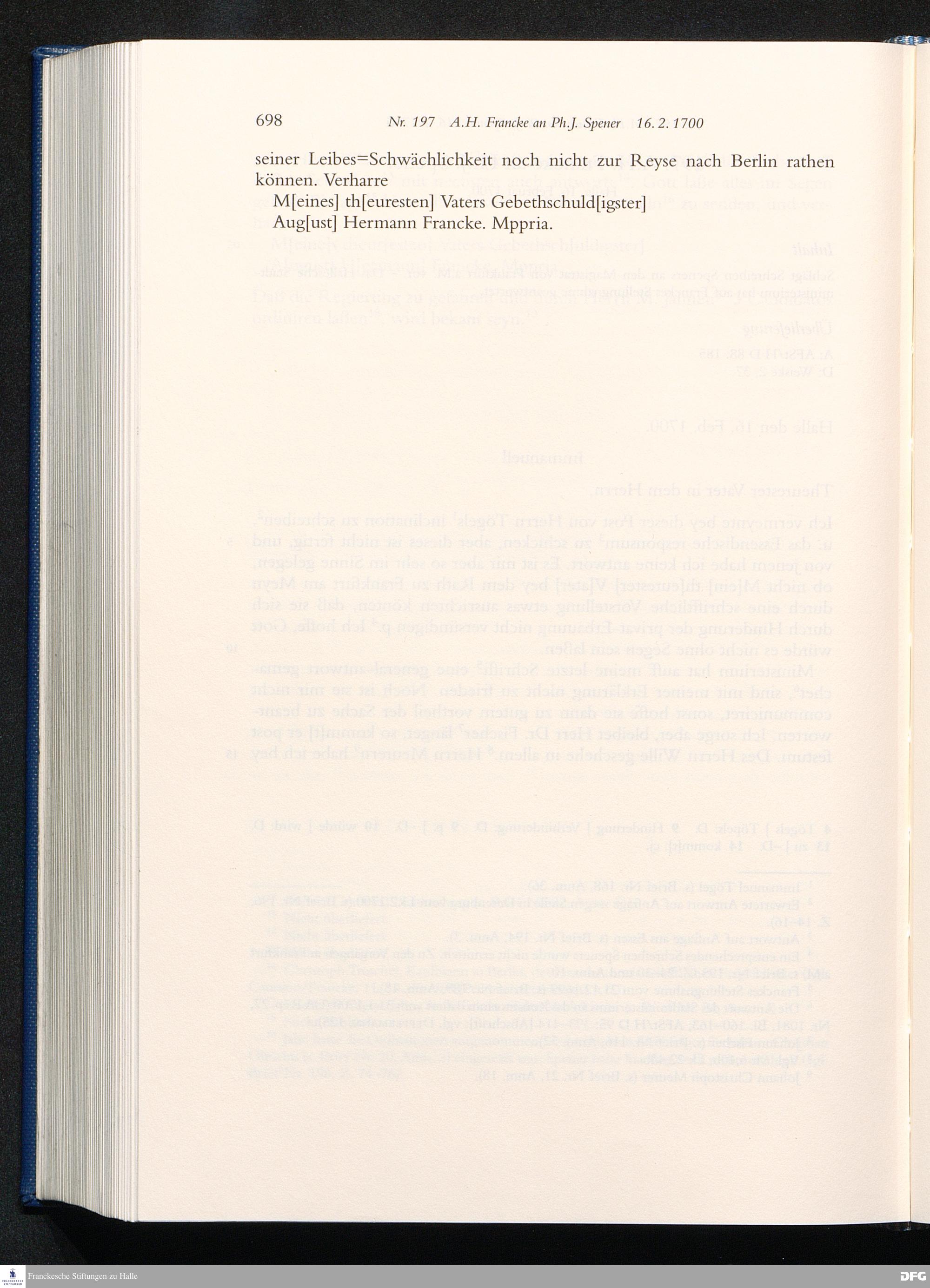 Nr. 197 A. H. Francke an Ph. J. Spener 16.02.1700
