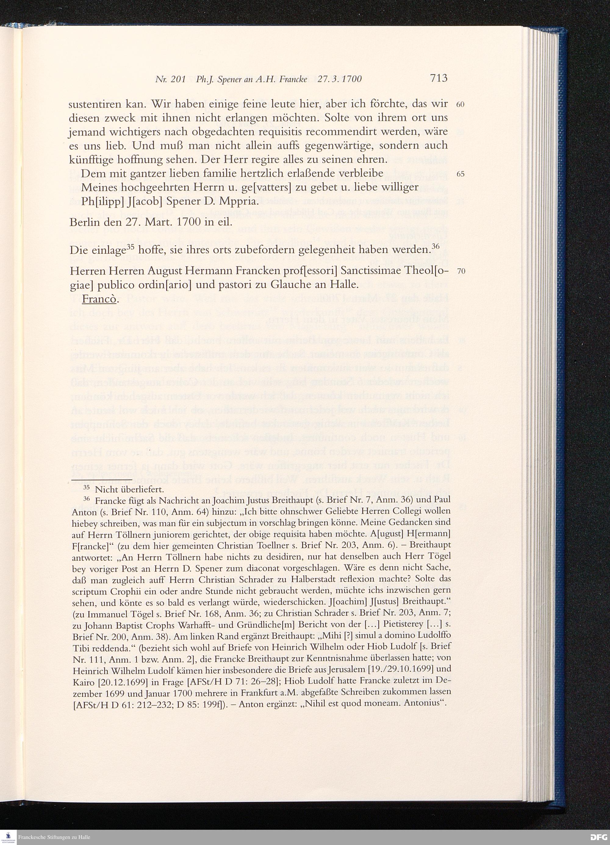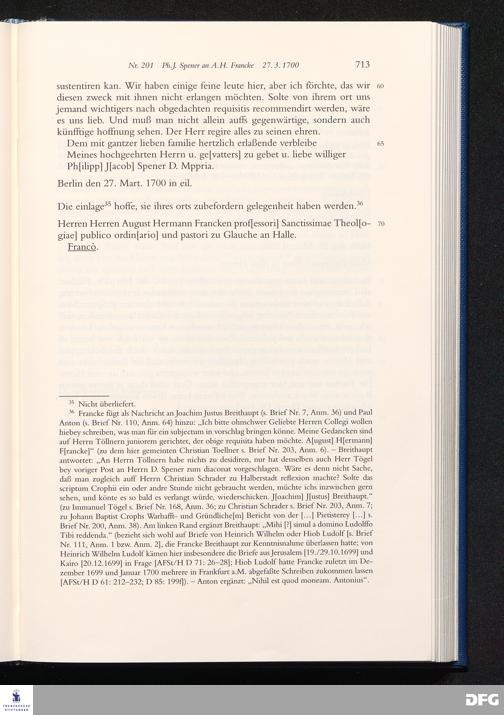Nr. 201 Ph. J. Spener an A. H. Francke 27.03.1700