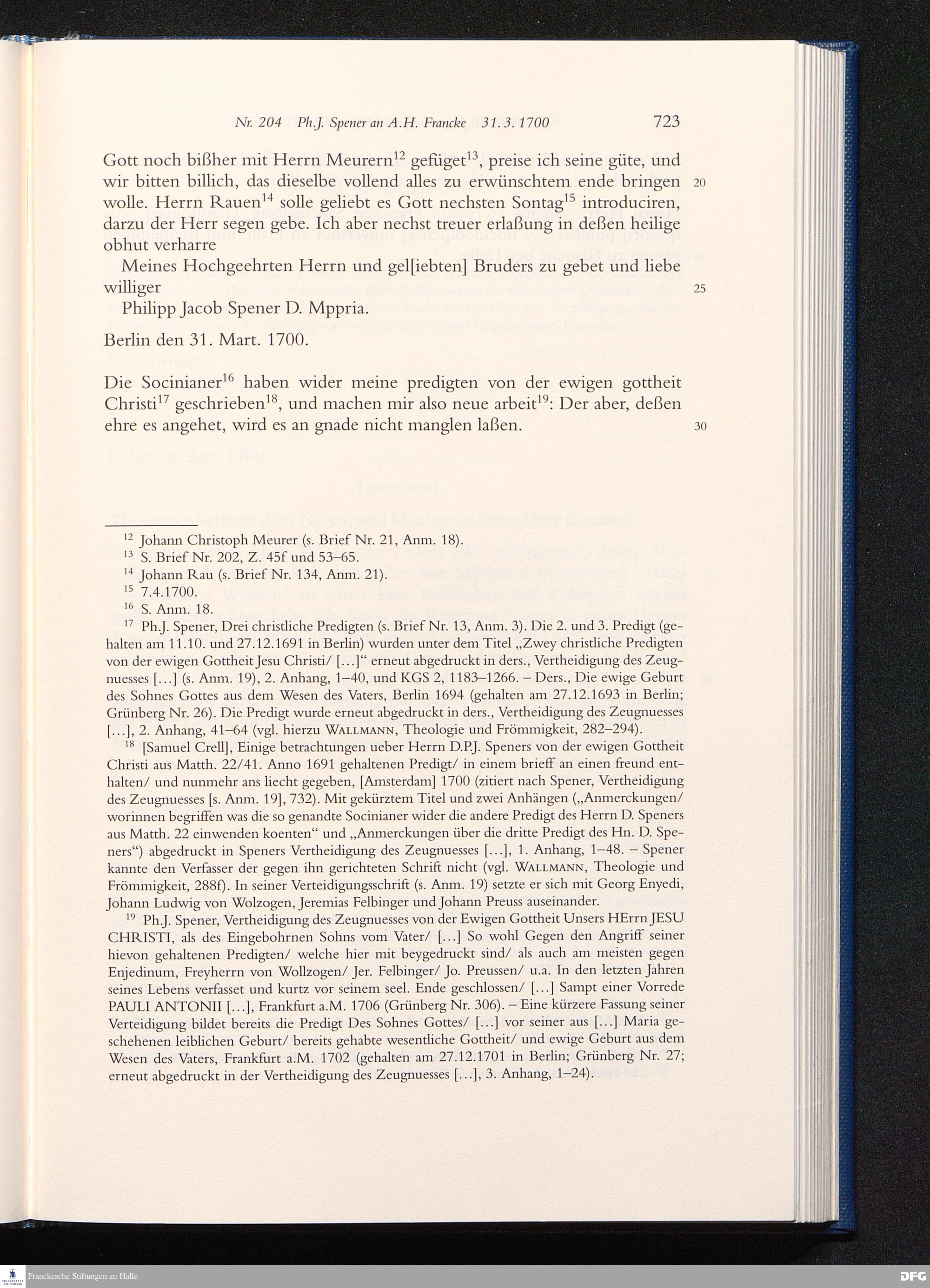 Briefwechsel mit August Hermann Francke : 1689 - 1704 / Philipp Jakob Spener. Hrsg. von Johannes Wallmann ... in Zsarb. mit Veronika Albrecht-Birkner