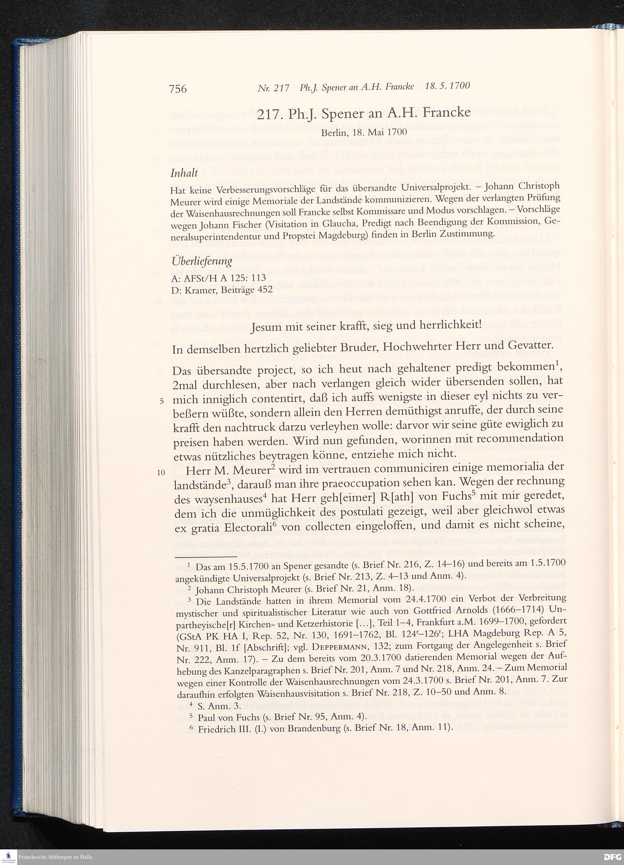 Briefwechsel mit August Hermann Francke : 1689 - 1704 / Philipp Jakob Spener. Hrsg. von Johannes Wallmann ... in Zsarb. mit Veronika Albrecht-Birkner
