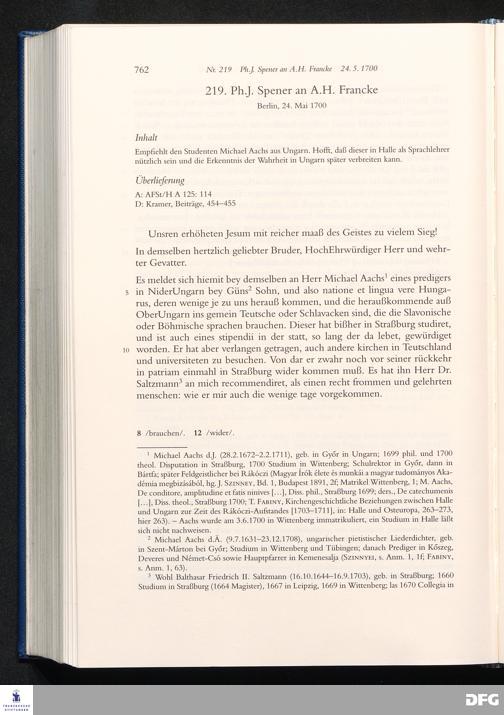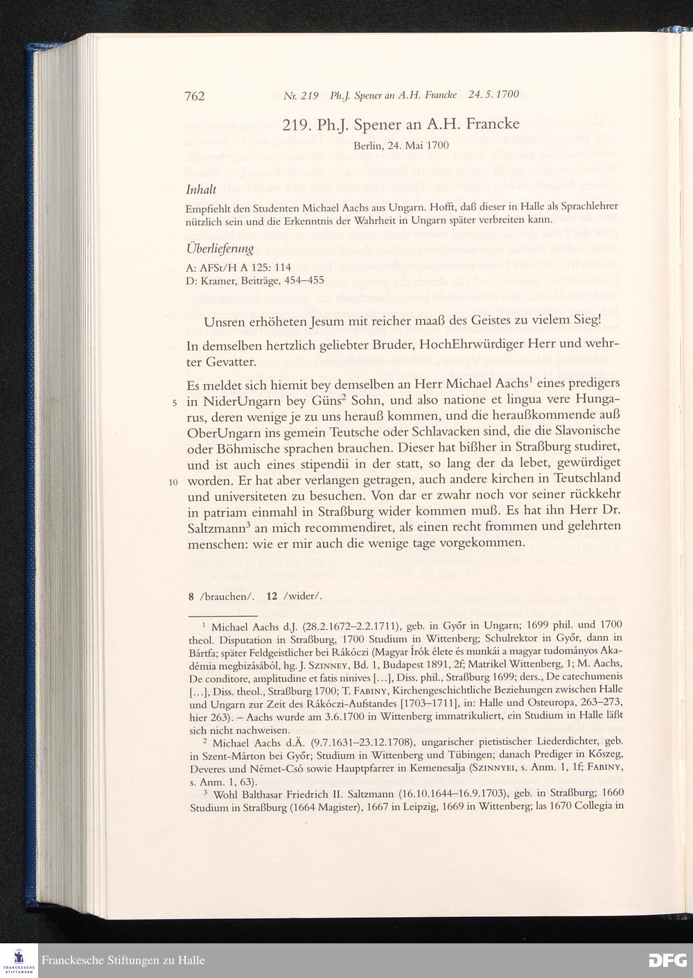 Briefwechsel mit August Hermann Francke : 1689 - 1704 / Philipp Jakob Spener. Hrsg. von Johannes Wallmann ... in Zsarb. mit Veronika Albrecht-Birkner