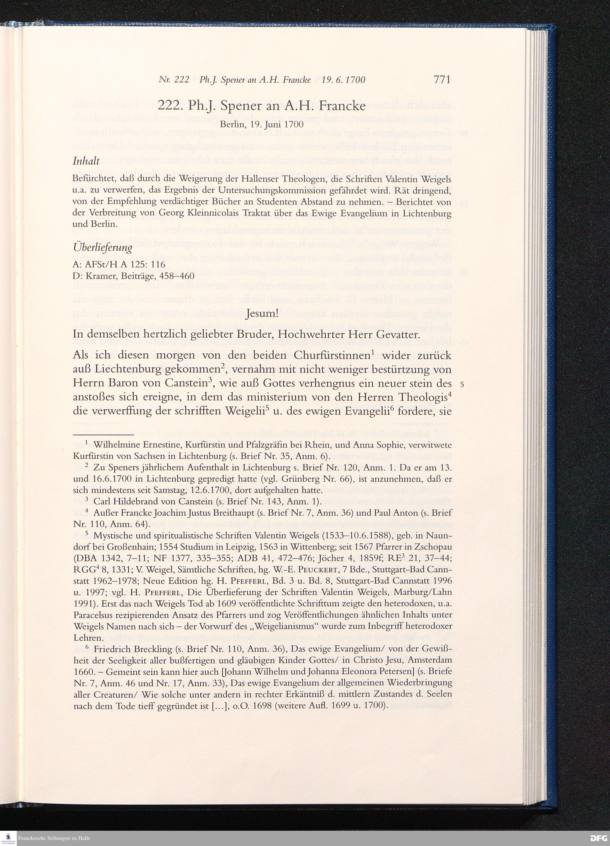 Briefwechsel mit August Hermann Francke : 1689 - 1704 / Philipp Jakob Spener. Hrsg. von Johannes Wallmann ... in Zsarb. mit Veronika Albrecht-Birkner