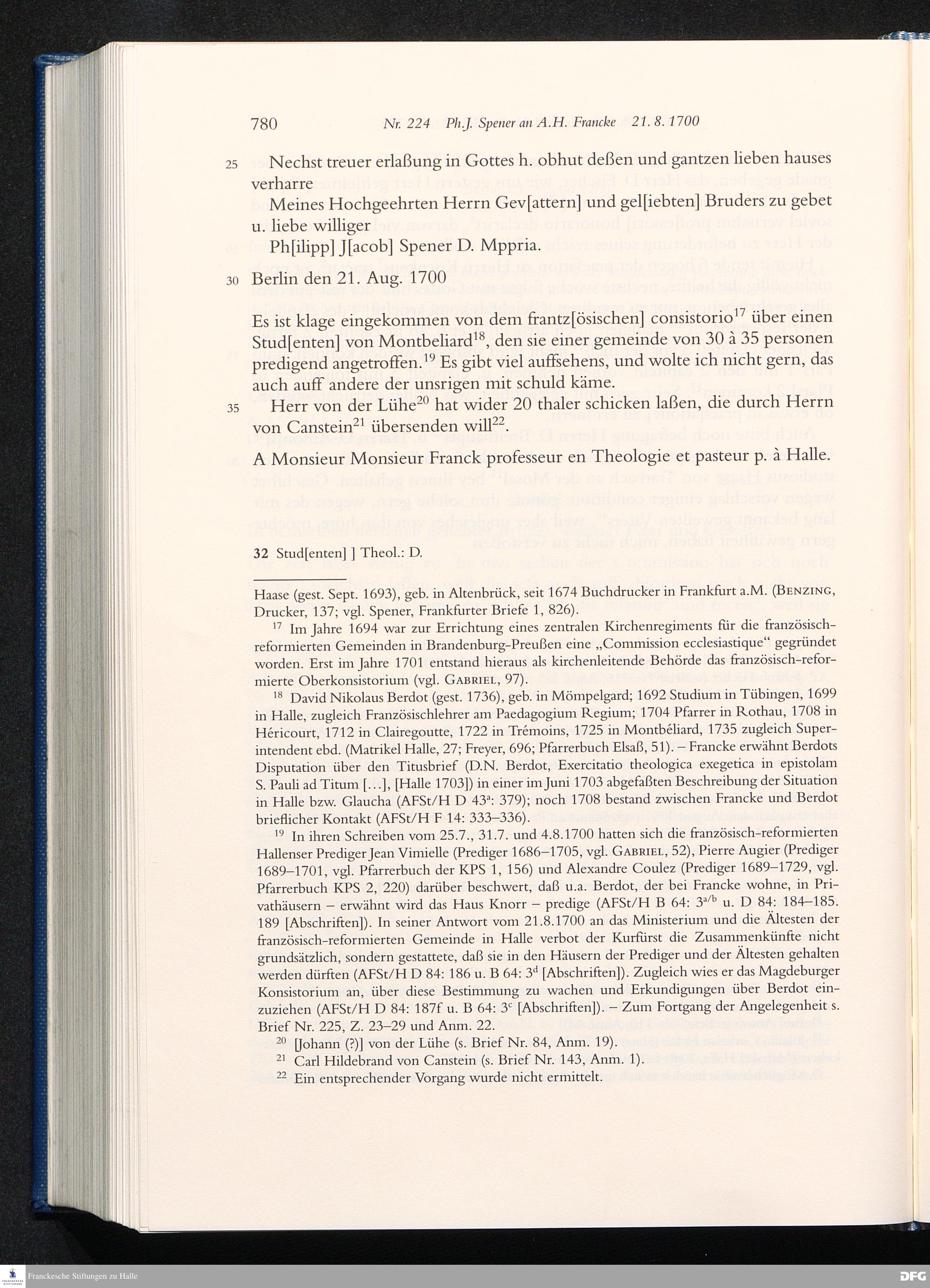 Briefwechsel mit August Hermann Francke : 1689 - 1704 / Philipp Jakob Spener. Hrsg. von Johannes Wallmann ... in Zsarb. mit Veronika Albrecht-Birkner