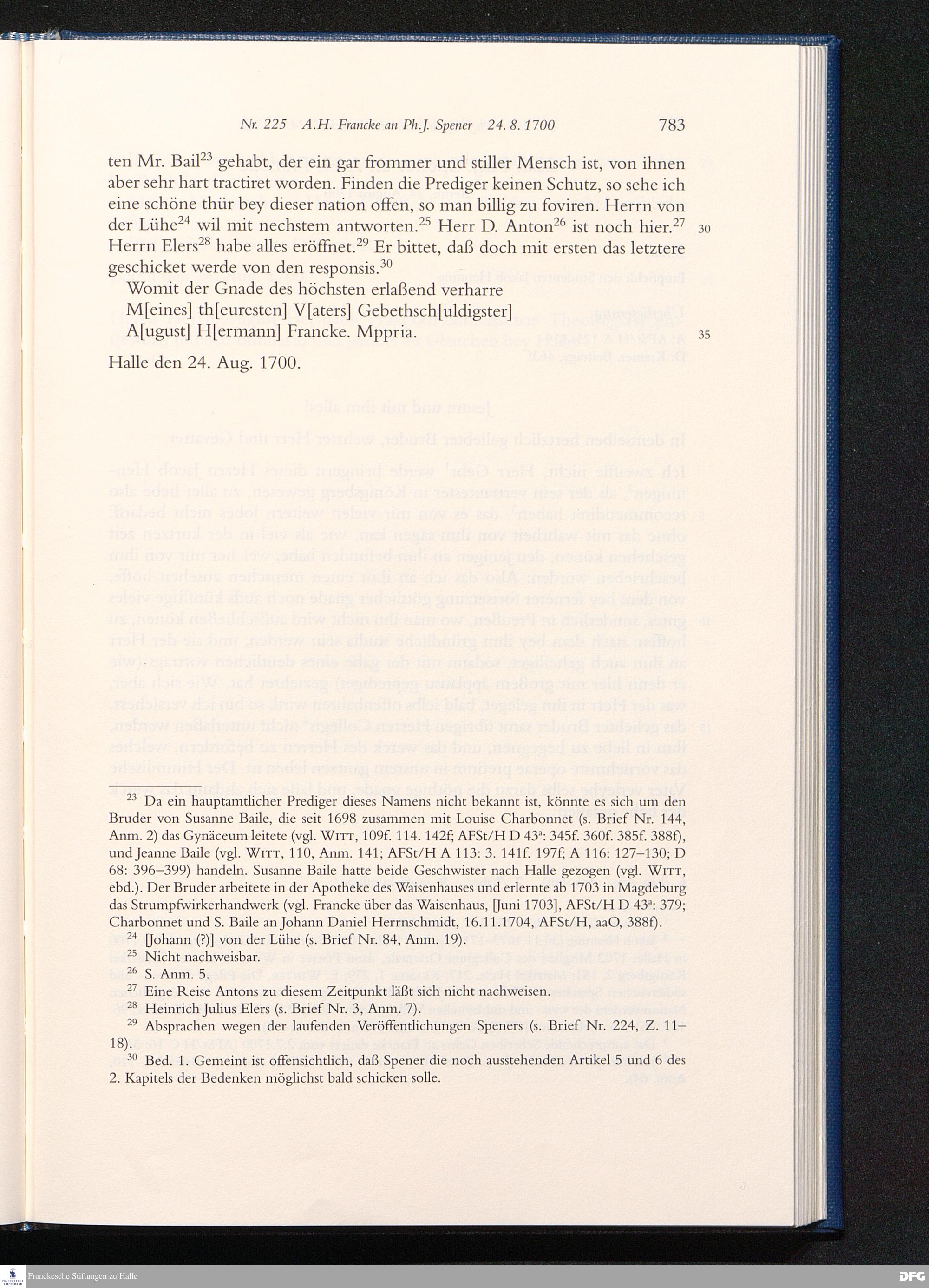 Nr. 225 A. H. Francke an Ph. J. Spener 24.08.1700