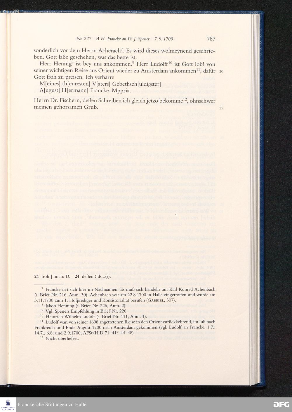 Nr. 227 A. H. Francke an Ph. J. Spener 07.09.1700