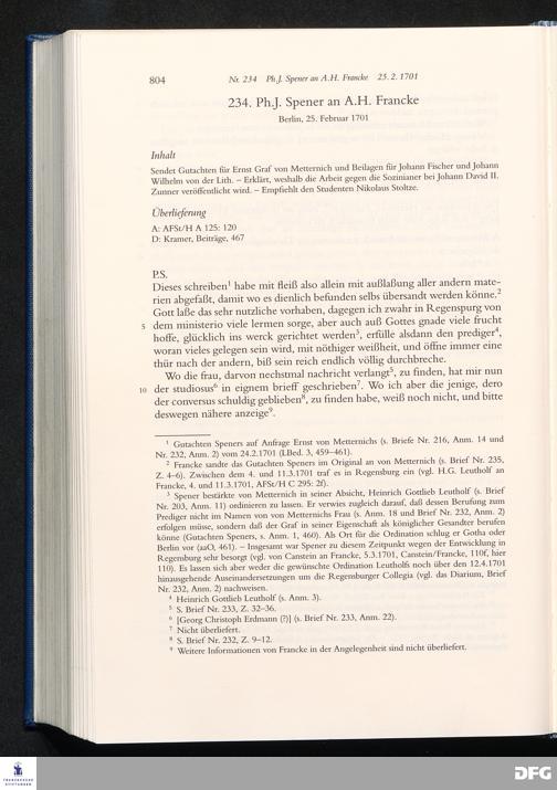 Briefwechsel mit August Hermann Francke : 1689 - 1704 / Philipp Jakob Spener. Hrsg. von Johannes Wallmann ... in Zsarb. mit Veronika Albrecht-Birkner