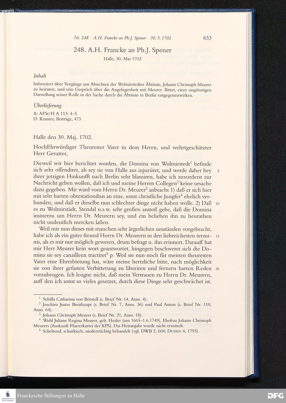 Nr. 248 A. H. Francke an Ph. J. Spener 30.05.1702