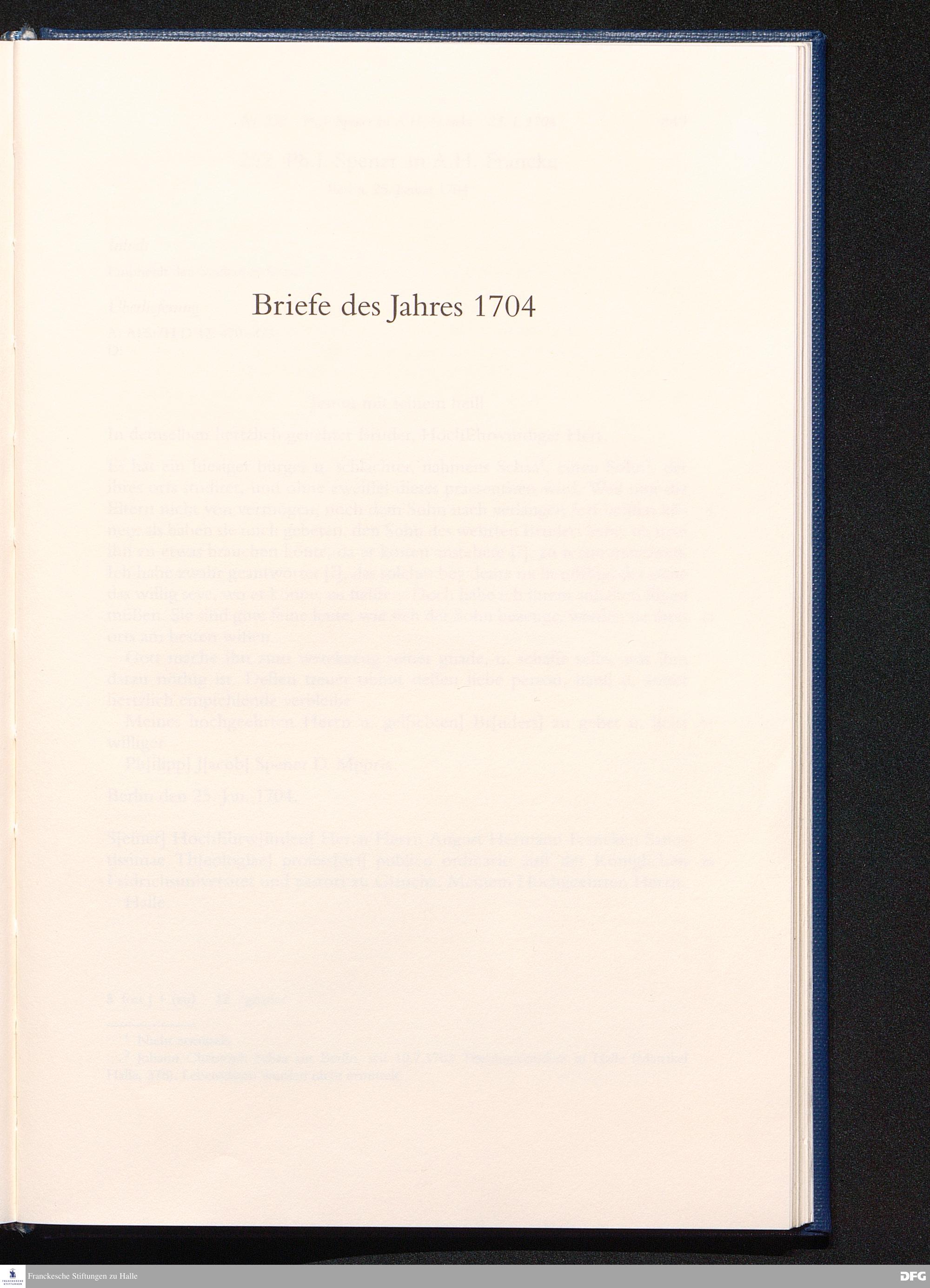 Briefwechsel mit August Hermann Francke : 1689 - 1704 / Philipp Jakob Spener. Hrsg. von Johannes Wallmann ... in Zsarb. mit Veronika Albrecht-Birkner