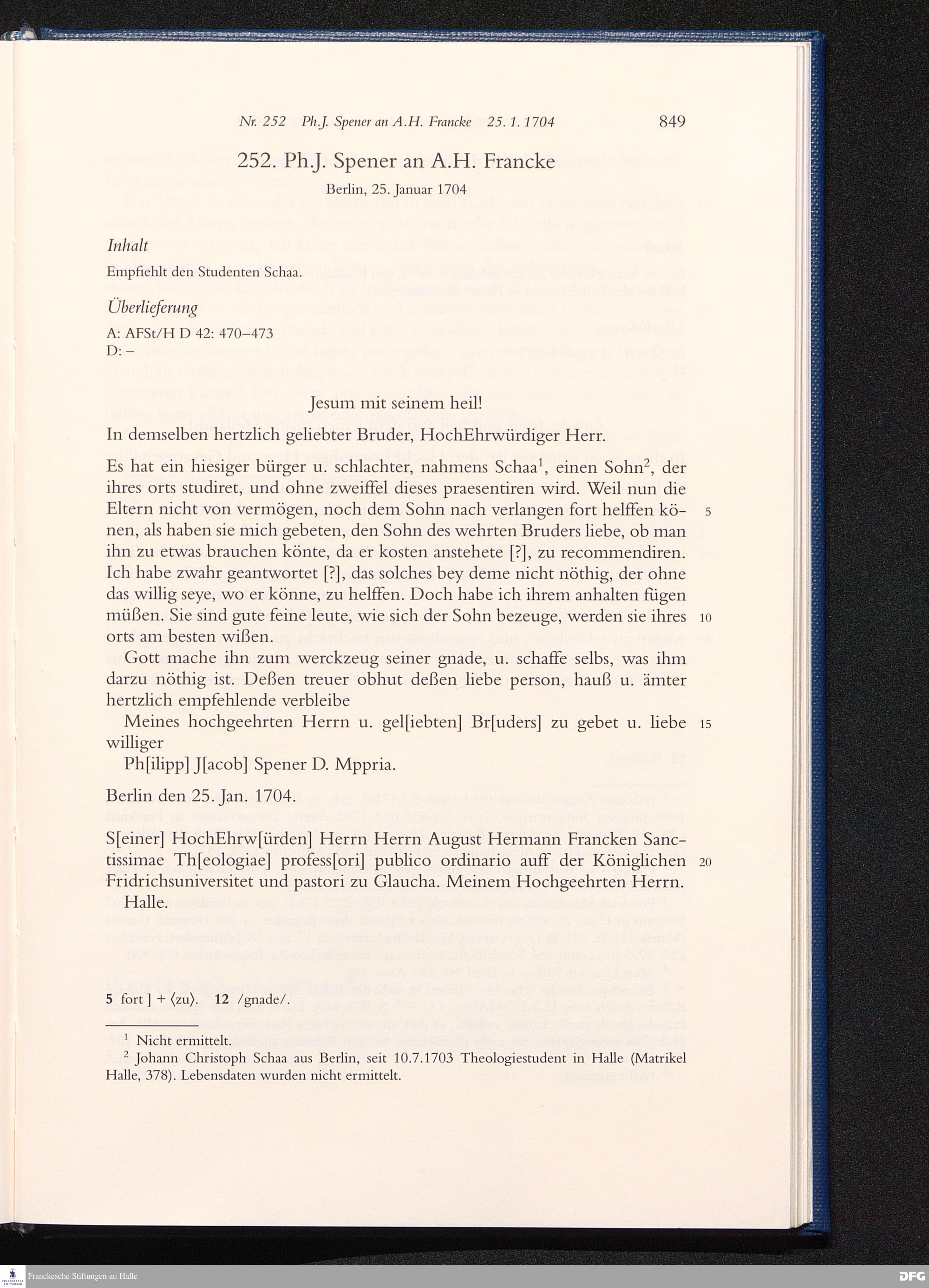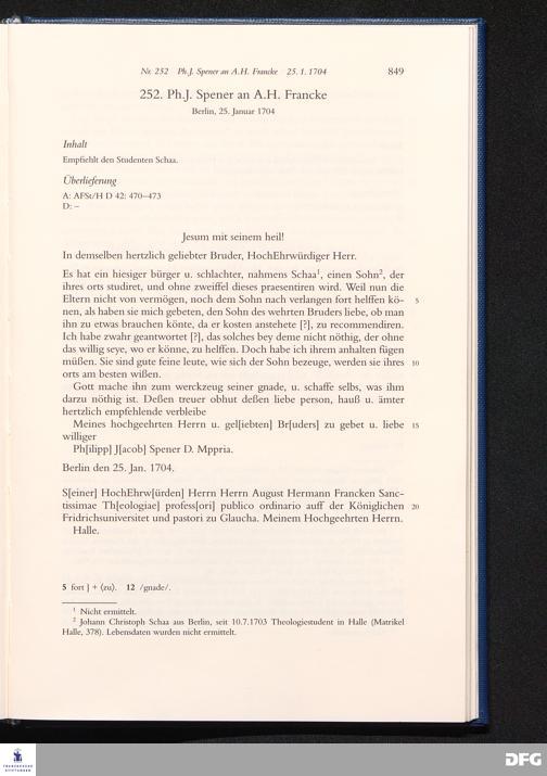Briefwechsel mit August Hermann Francke : 1689 - 1704 / Philipp Jakob Spener. Hrsg. von Johannes Wallmann ... in Zsarb. mit Veronika Albrecht-Birkner