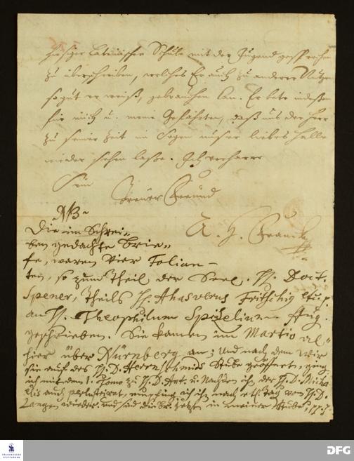 Brief von August Hermann Francke an Heinrich Milde.