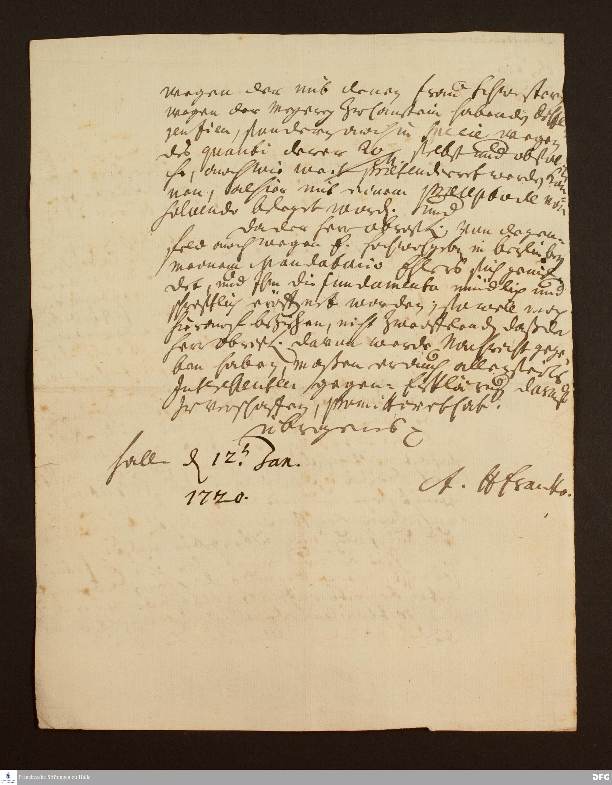 Brief von August Hermann Francke an Frau v. Holtzendorff.