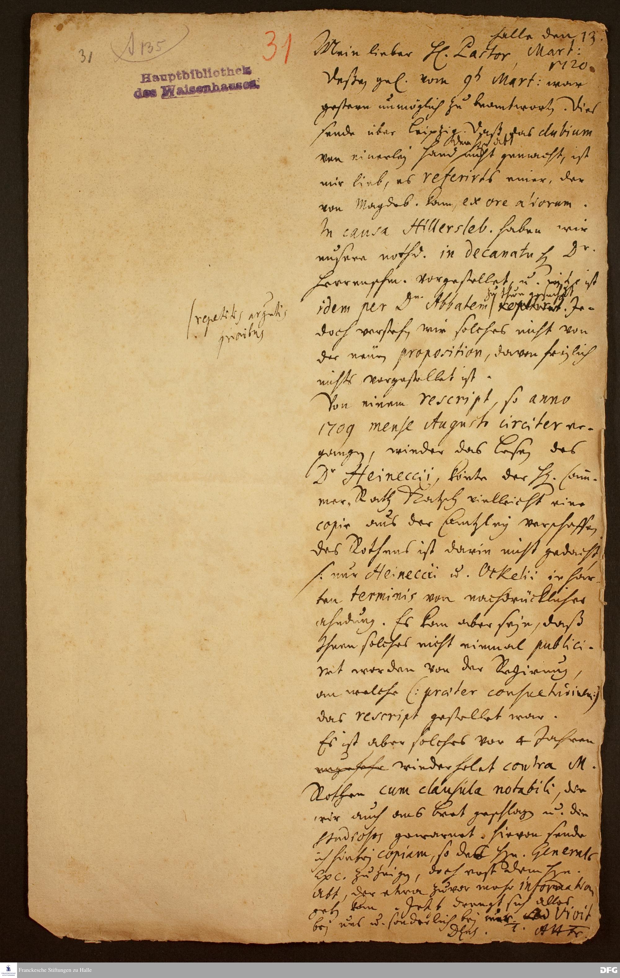 Brief von August Hermann Francke an [Johann Ludwig Lindhammer].