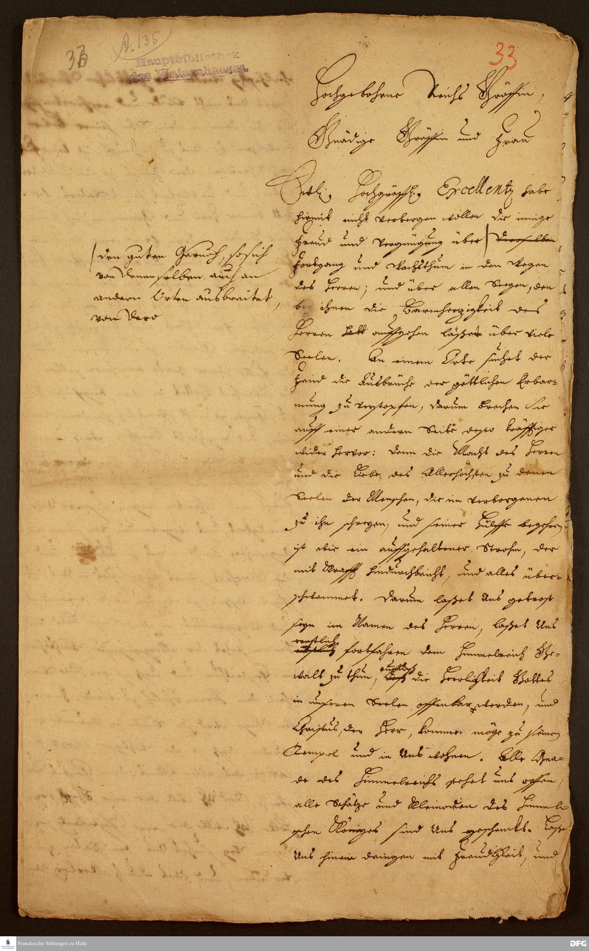 Brief von August Hermann Francke an [Benigna v. Solms-Laubach].