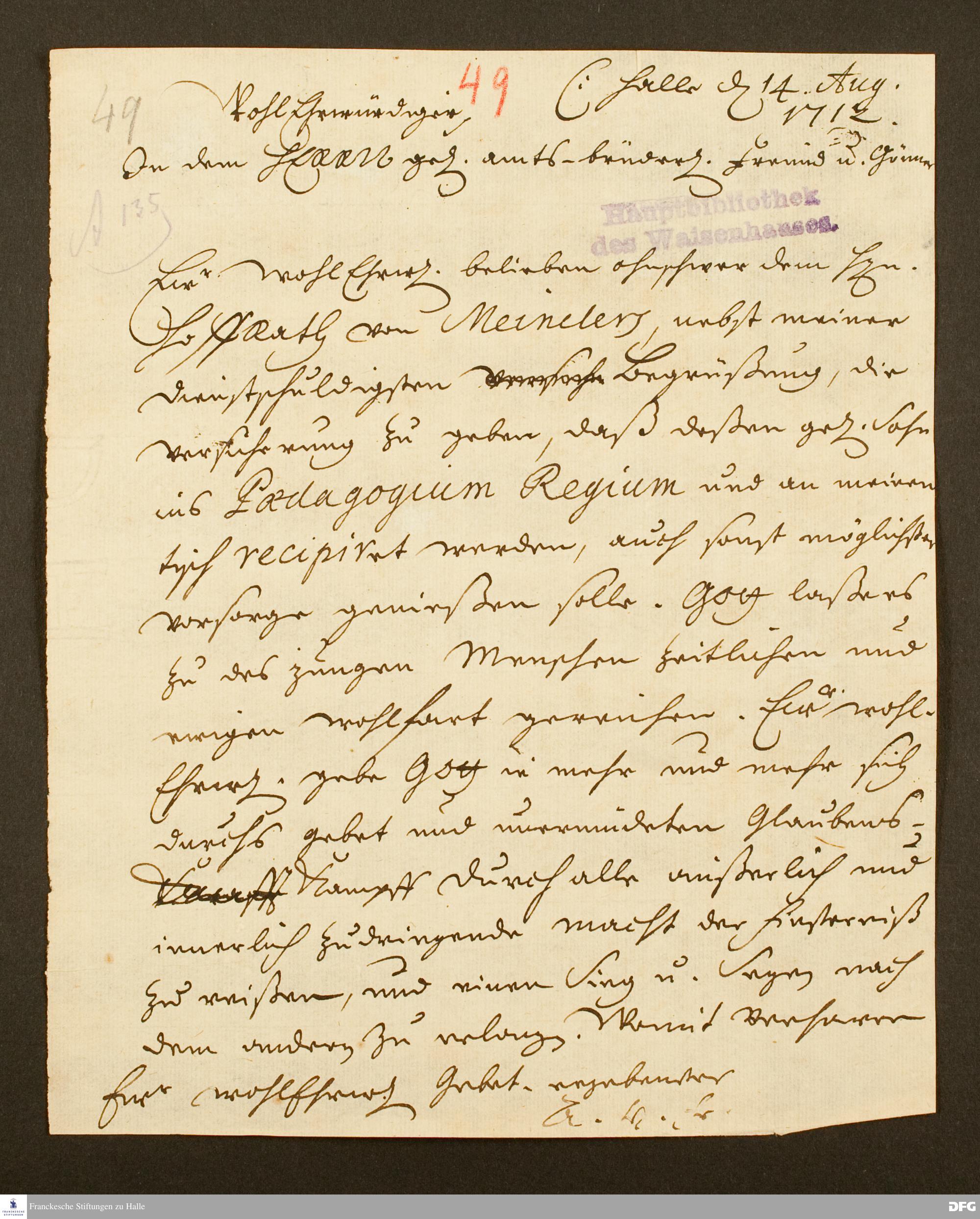 Brief von August Hermann Francke an [Unbekannt].
