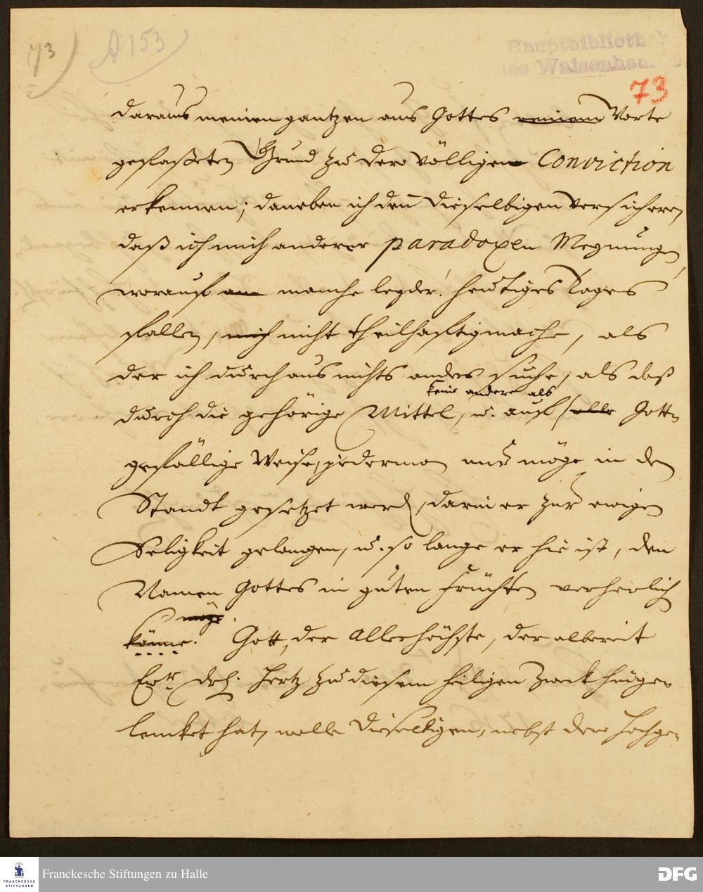 Teil eines Briefs von August Hermann Francke an Ernst Ferdinand v. Braunschweig-Wolfenbüttel-Bevern.