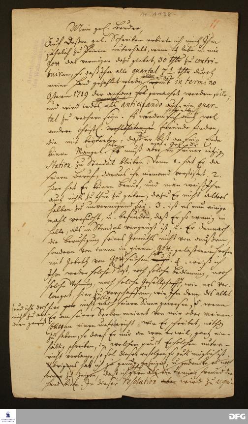 Brief von August Hermann Francke an Johannes Crasselius.