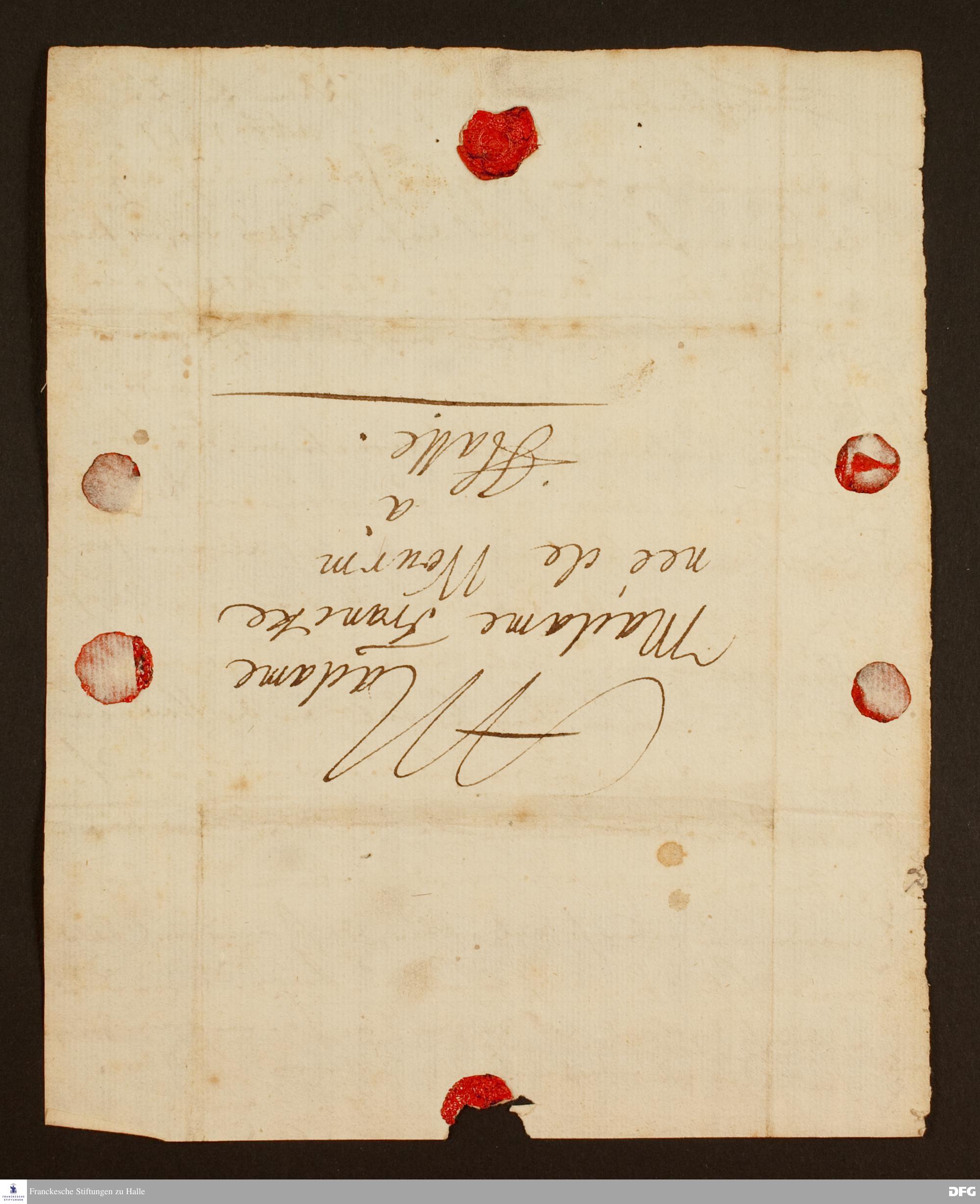 Brief von August Hermann Francke an Anna Magdalena Francke.