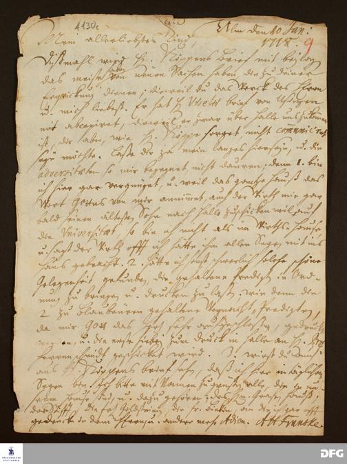 Brief von August Hermann Francke an Anna Magdalena Francke.