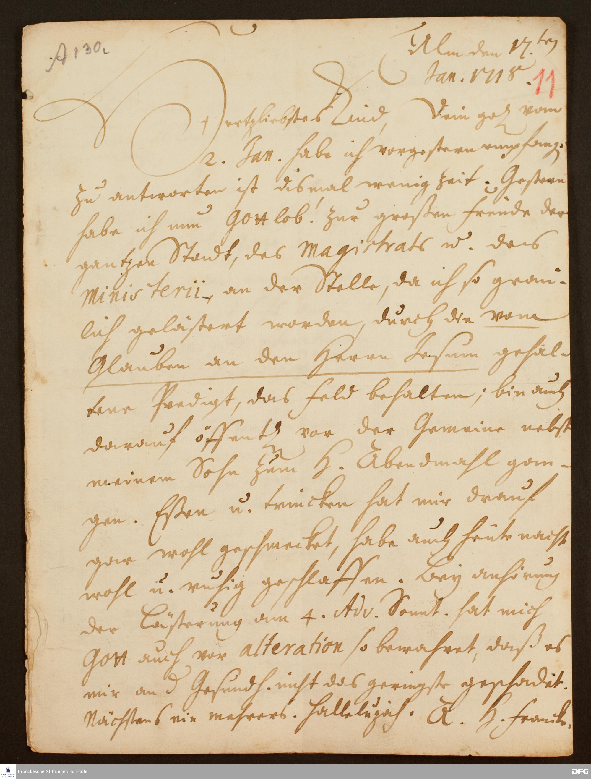 Brief von August Hermann Francke an Anna Magdalena Francke.