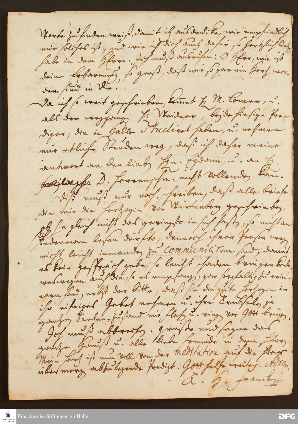 Brief von August Hermann Francke an Anna Magdalena Francke.