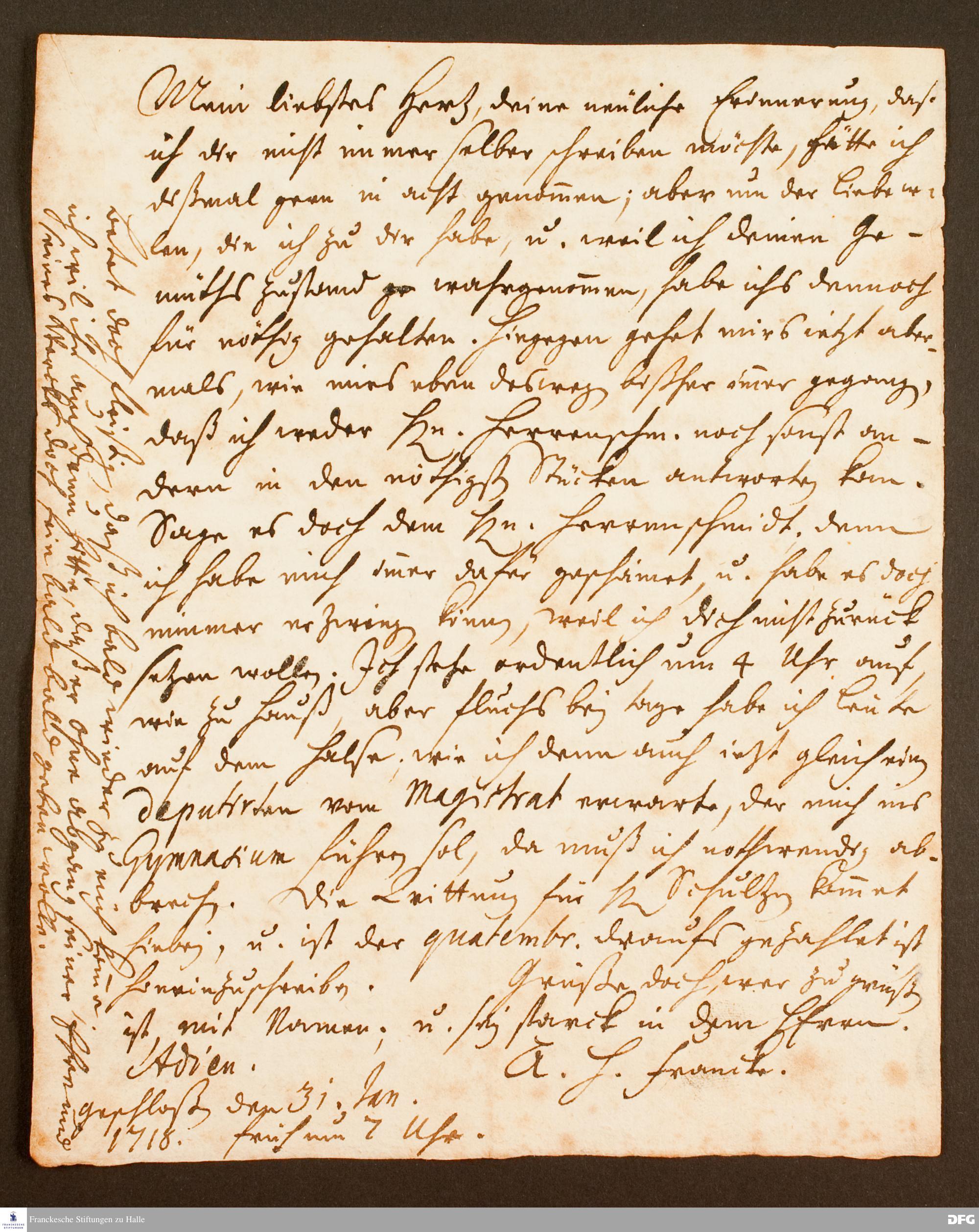 Brief von August Hermann Francke an Anna Magdalena Francke.