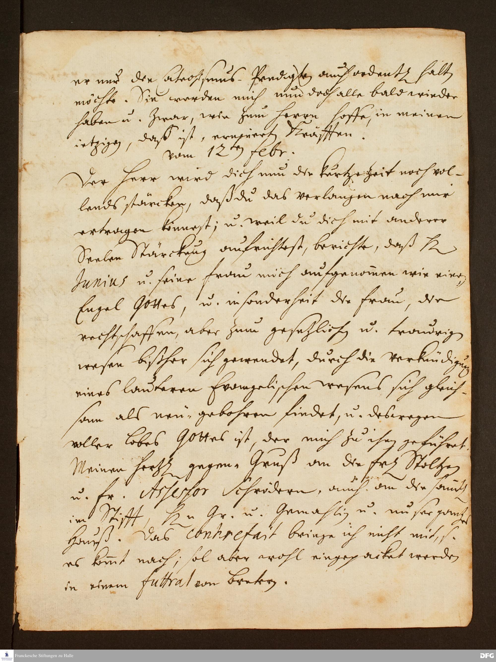 Brief von August Hermann Francke an Anna Magdalena Francke.
