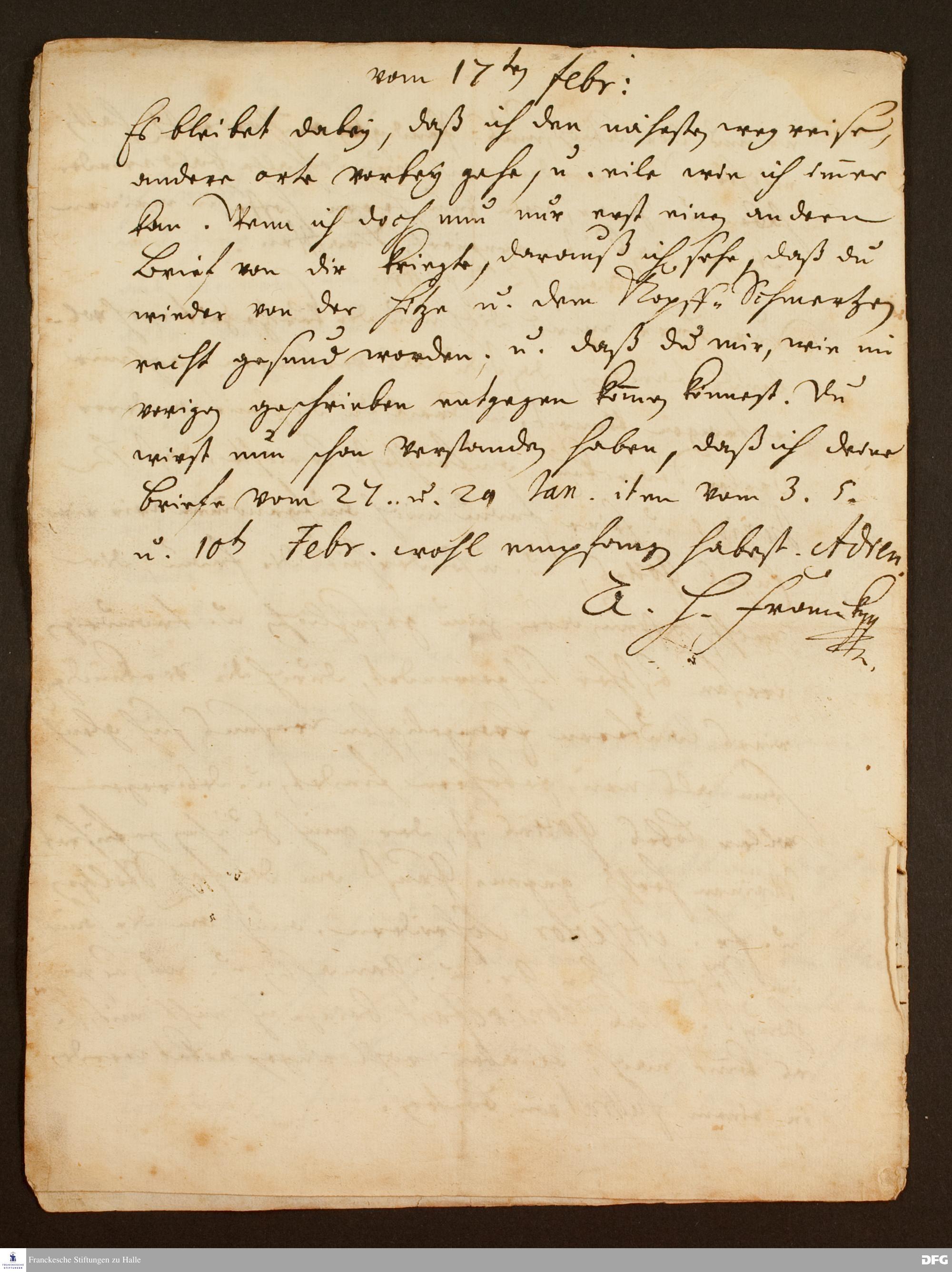 Brief von August Hermann Francke an Anna Magdalena Francke.