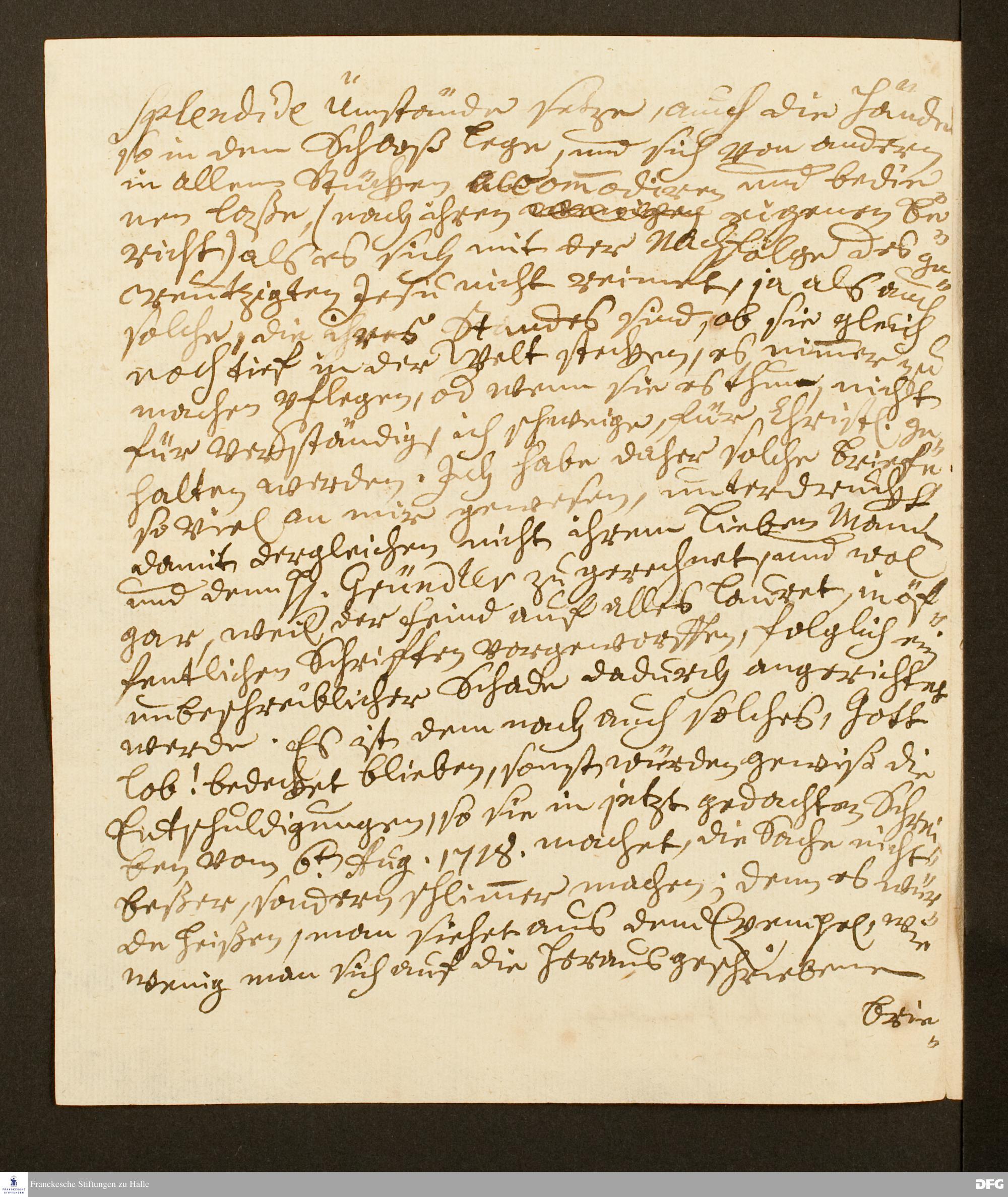Brief von August Hermann Francke an Maria Dorothea Ziegenbalg.