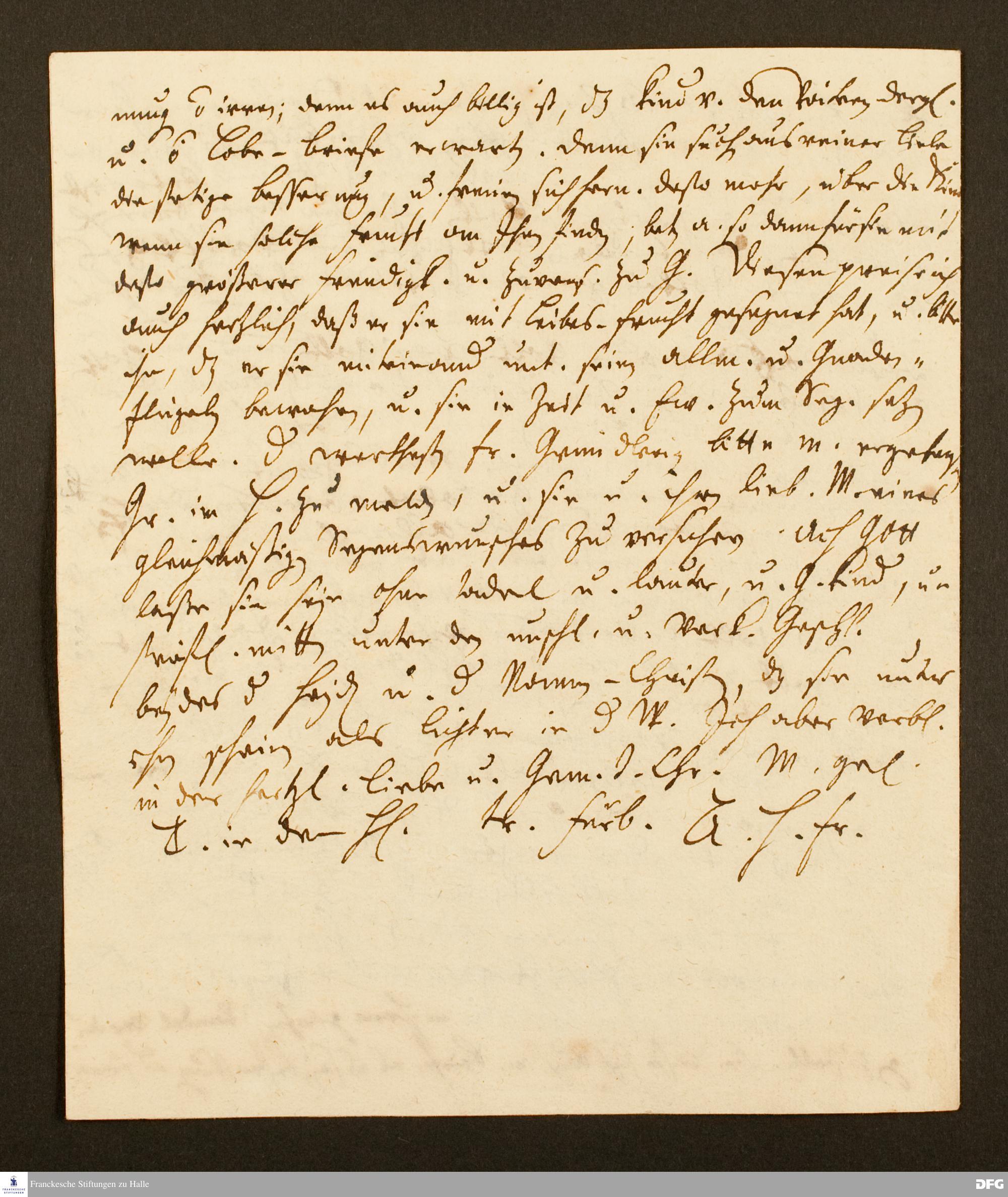 Brief von August Hermann Francke an Maria Dorothea Ziegenbalg.