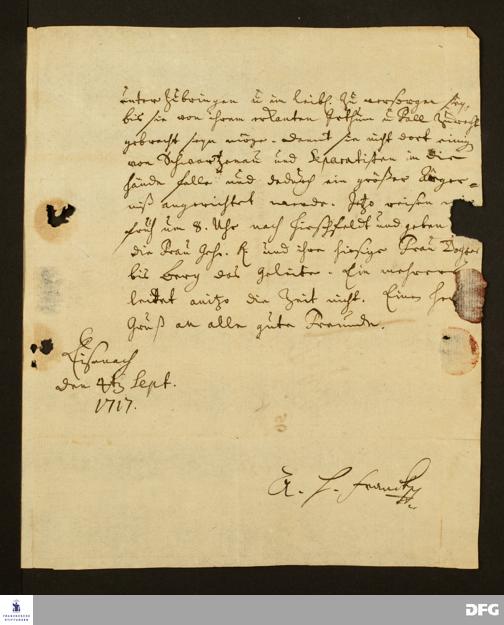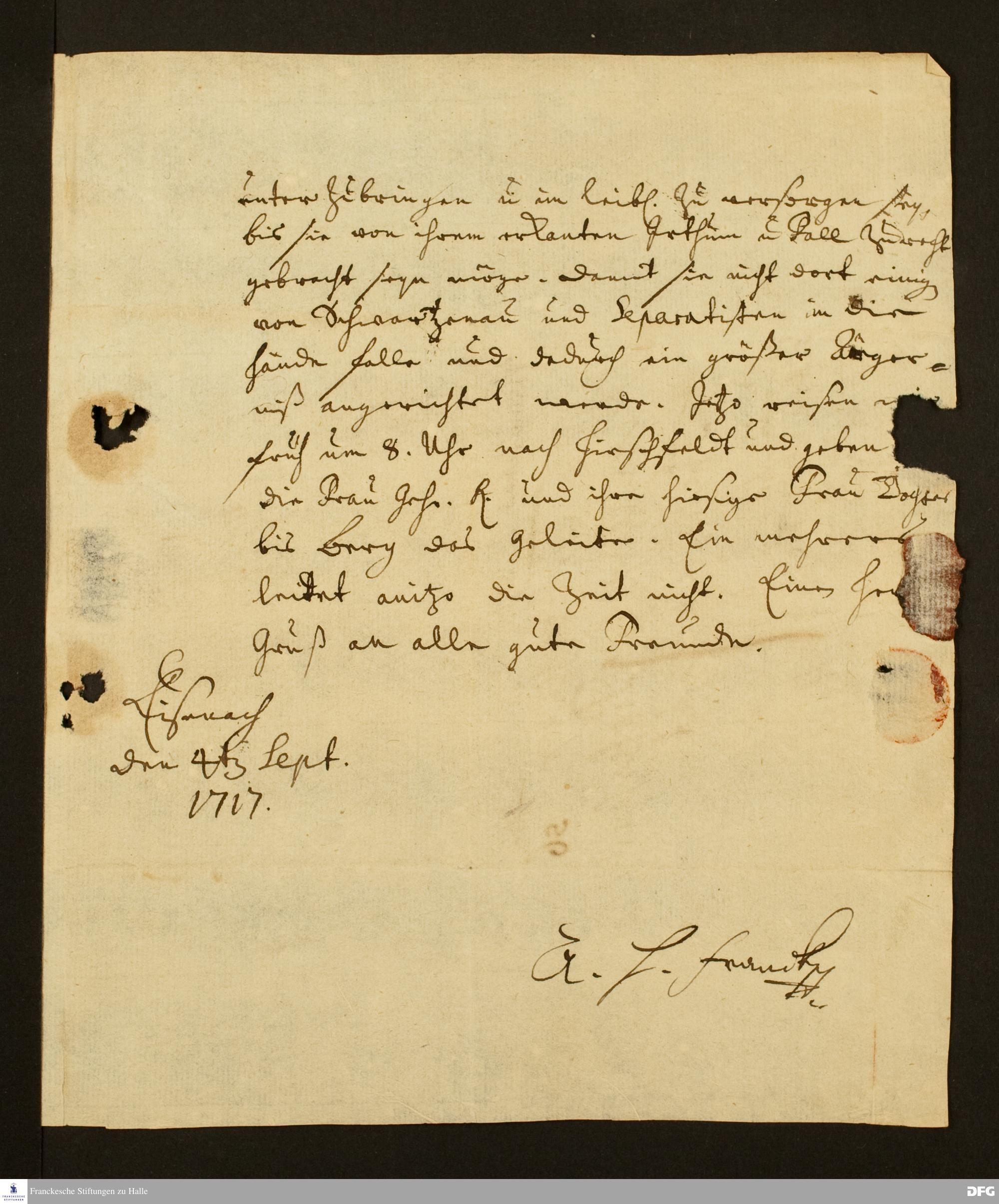 Brief von August Hermann Francke an Johann Daniel Herrnschmidt.