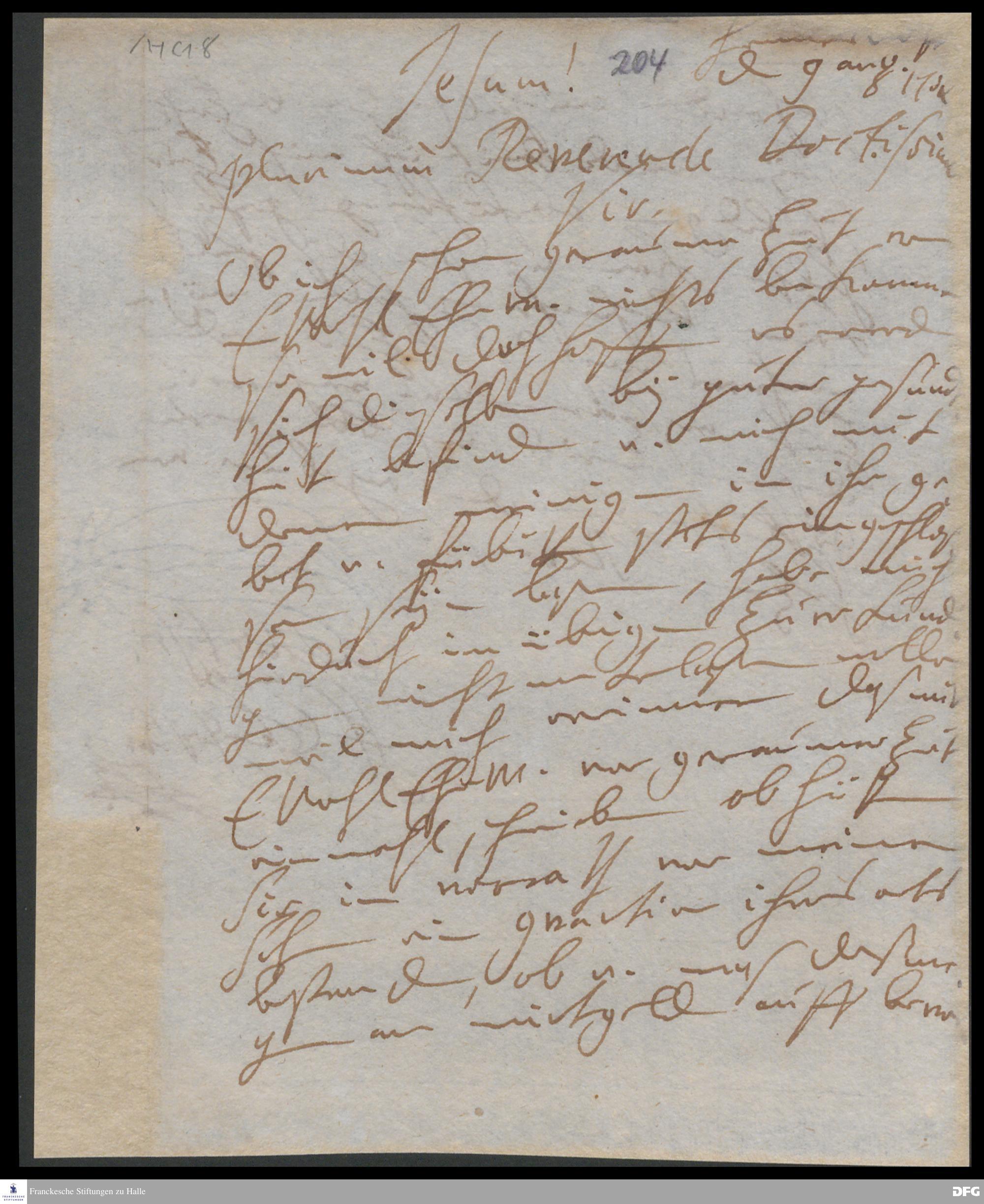 Brief von Henriette Catharina v. Gersdorff an August Hermann Francke.