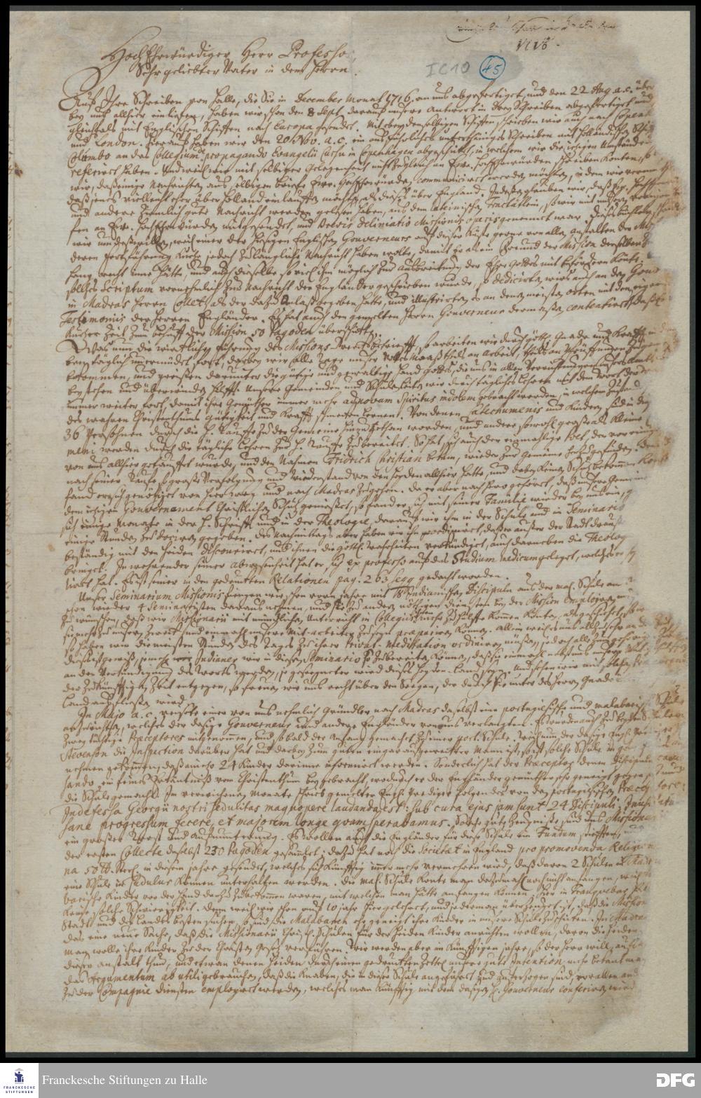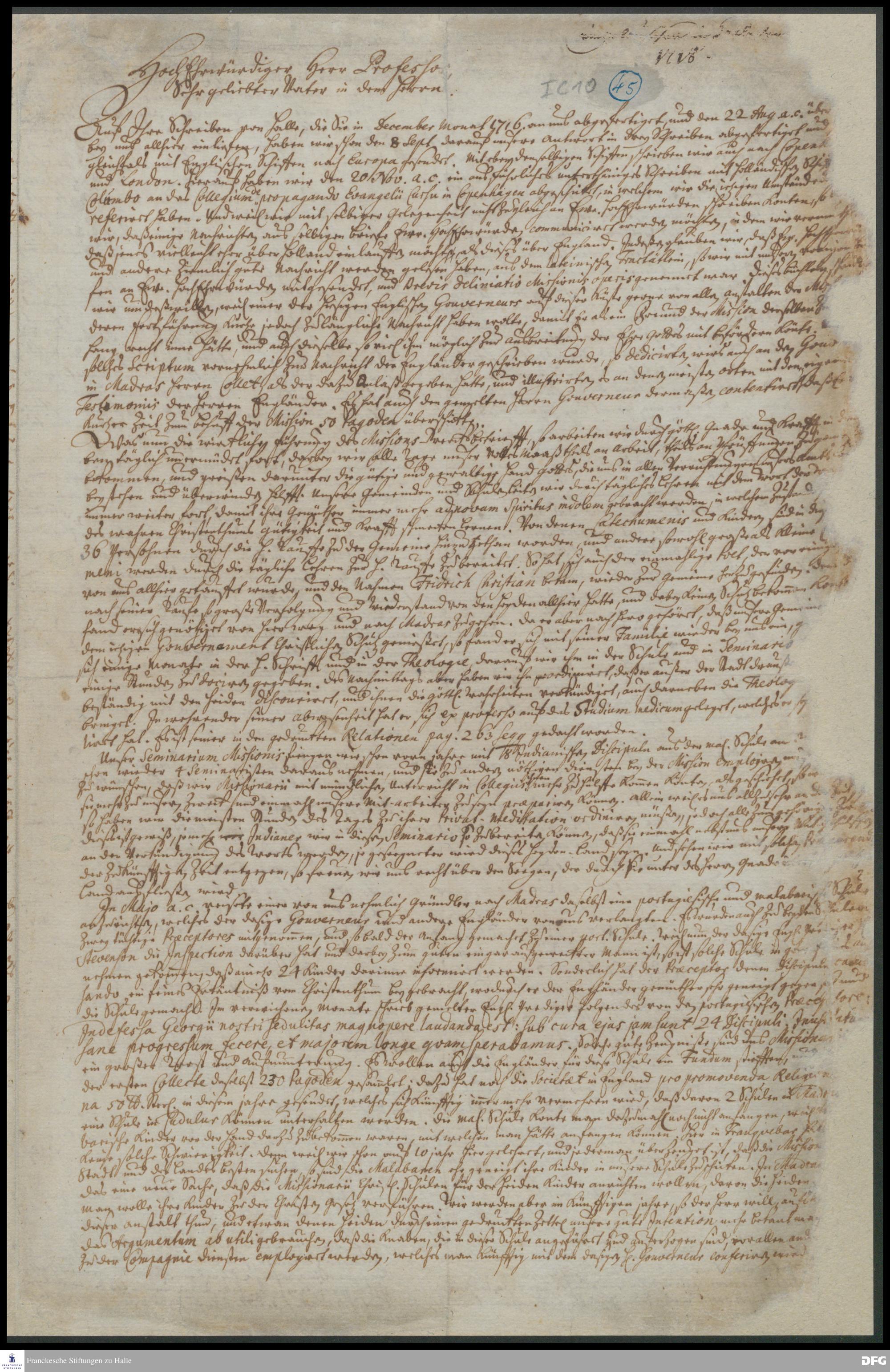 Brief von Bartholomäus Ziegenbalg und Johann Ernst Gründler an August Hermann Francke.