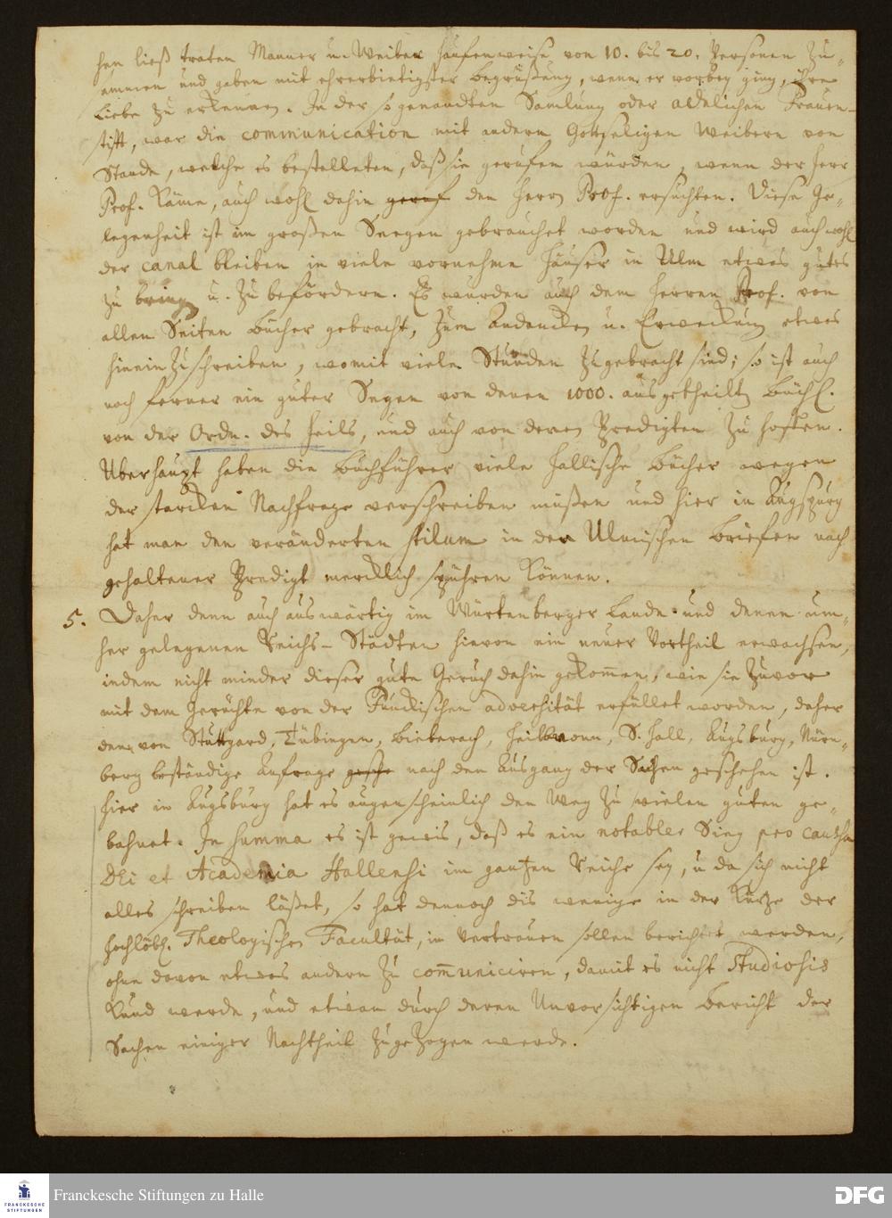 Bericht von August Hermann Francke an Johann Daniel Herrnschmidt und die Theologische Fakultät der Universität Halle.