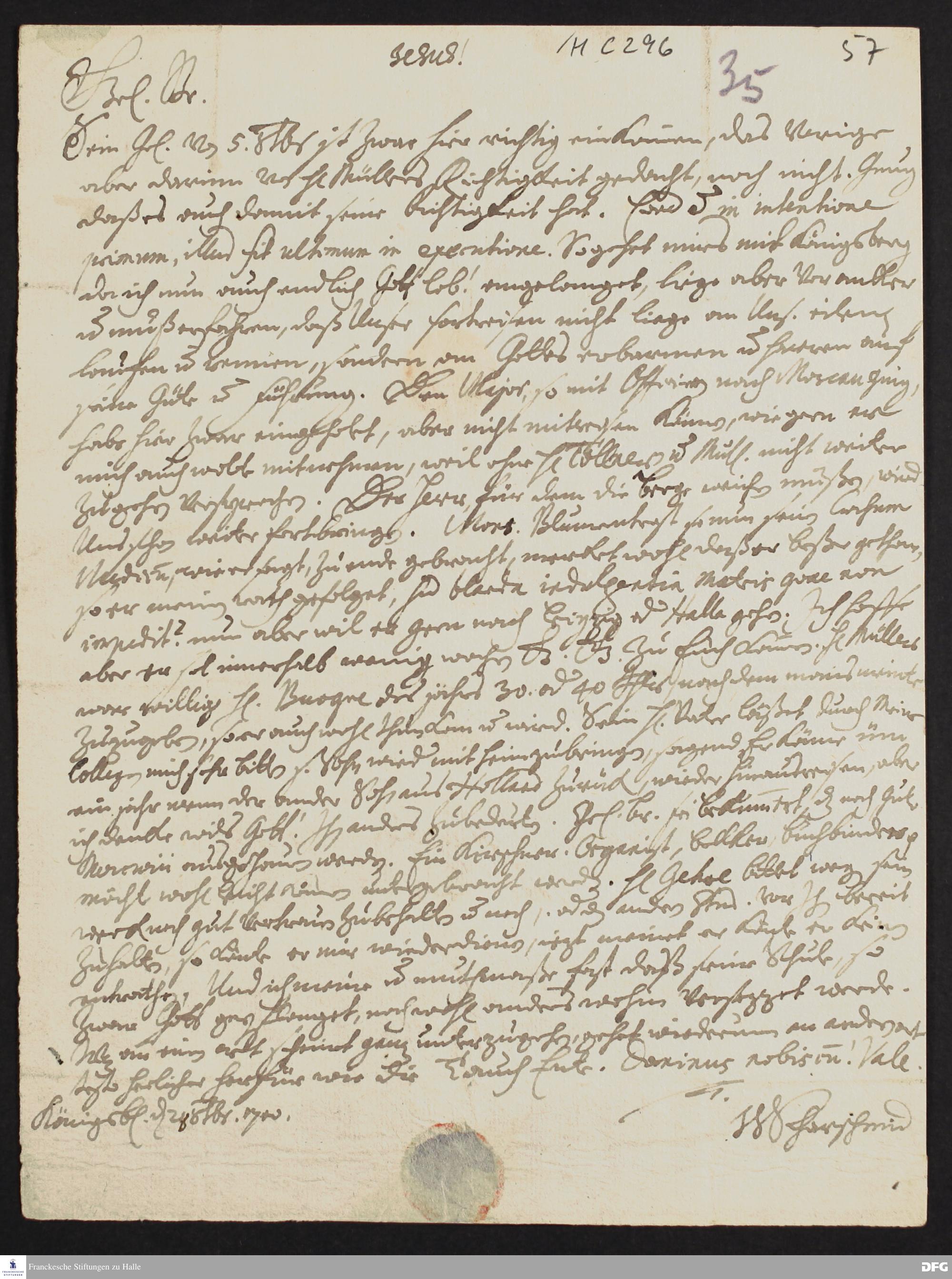 Brief von Justus Samuel Scharschmidt an August Hermann Francke.