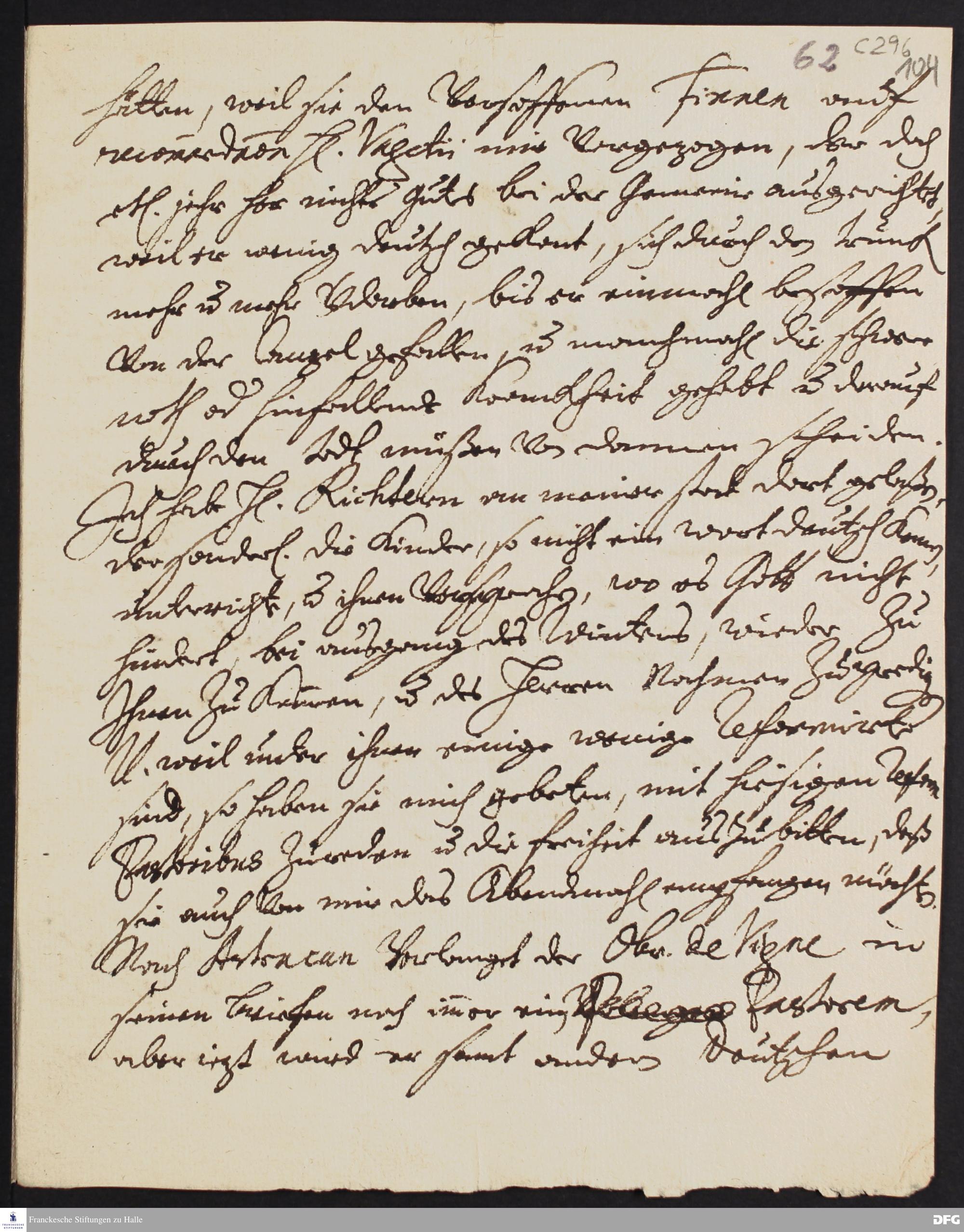 Fragment eines Briefes von Justus Samuel Scharschmidt an [August Hermann Francke].